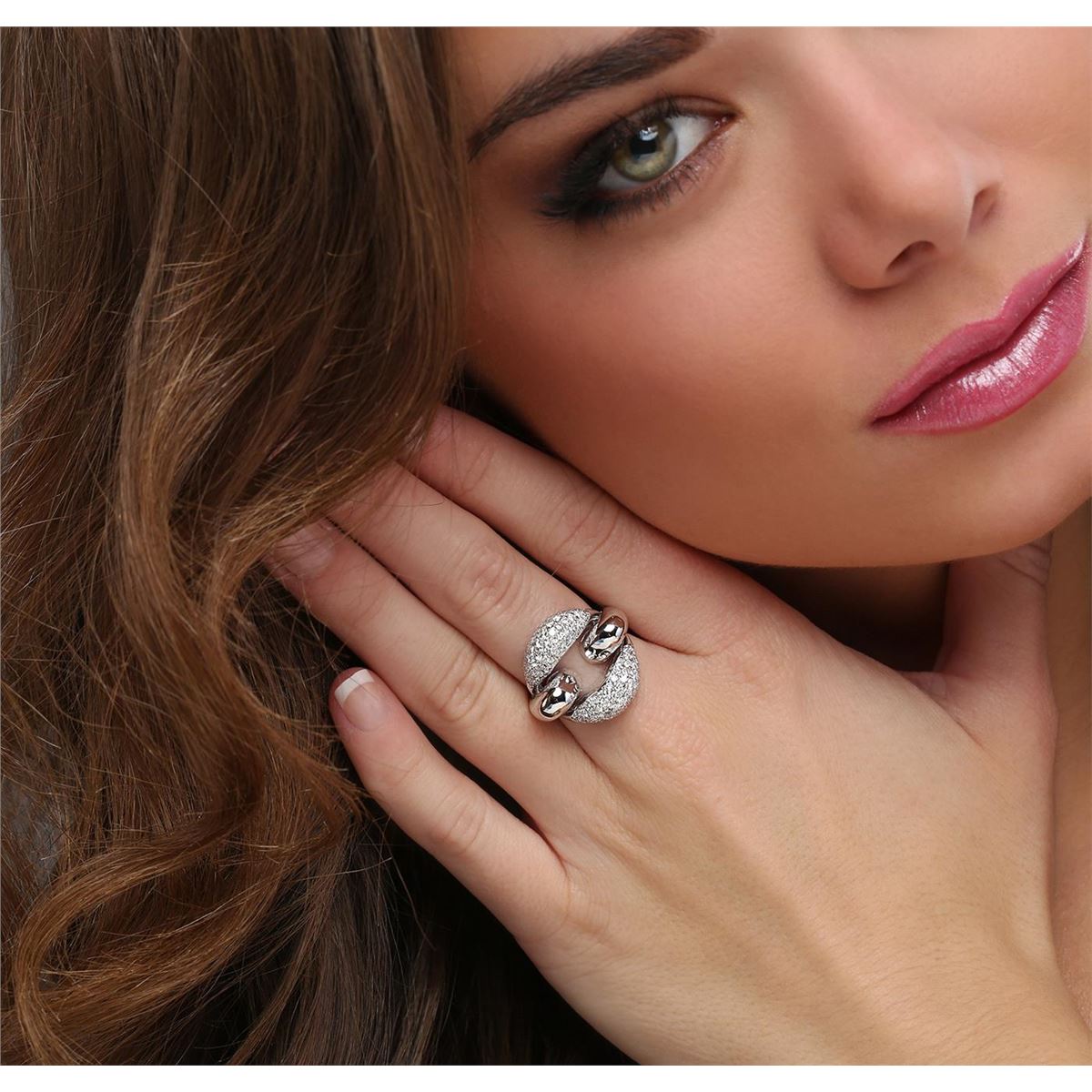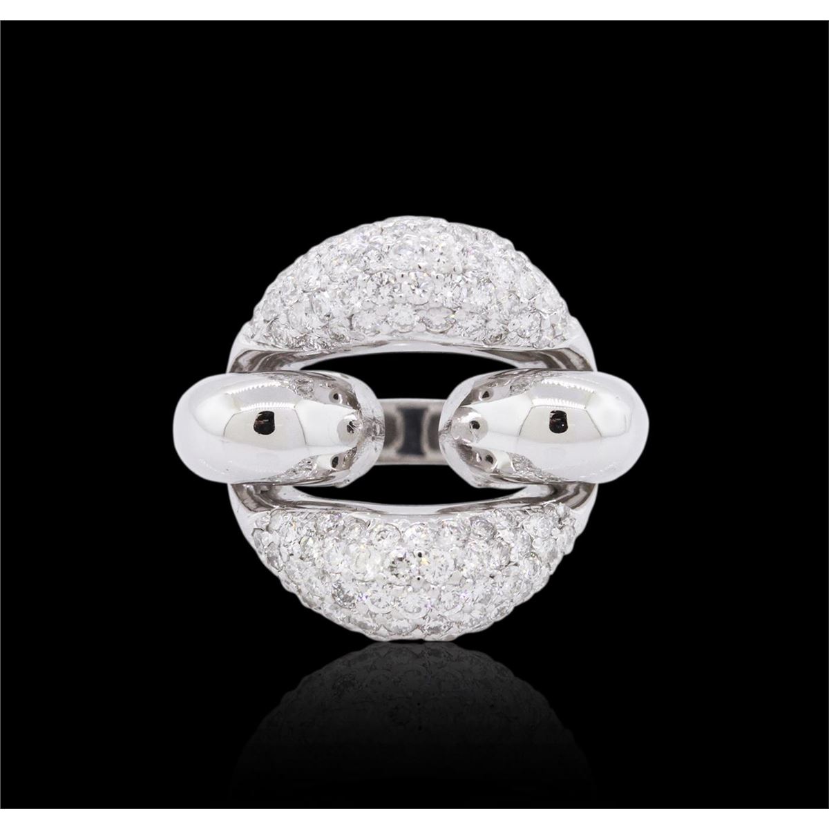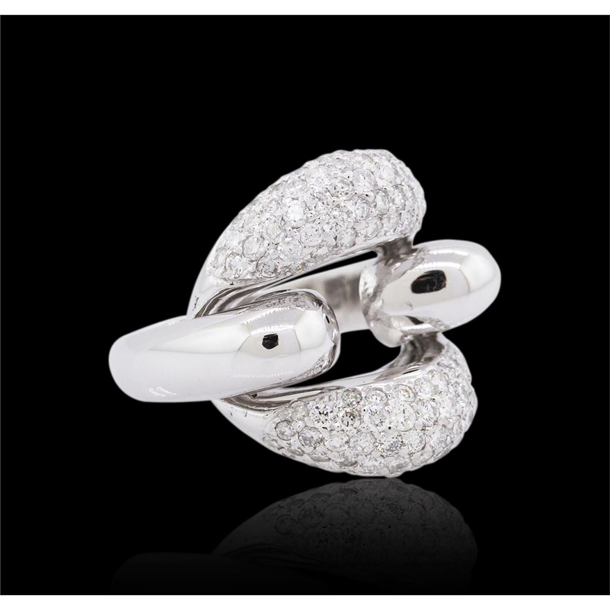 One electronically tested 14KT white gold ladies combination cast & assembled diamond ring with a flat shank with rounded edges with a bright polish finish. Identified with markings of "K14". Condition is new. Containing: One Hundred Twenty-Four prong set round brilliant cut diamonds, measuring 1.70 - 1.70 x 1.02mm (depth est.) approximate total weight of 124 Stones = 2.22ct. Clarity: SI-1 to SI-2. Color: H - J, Cut is Good. All diamonds are graded in the mounting, unless otherwise stated. Total Weight of Diamonds 2.22ct. Total Weight of Ring 11.80 grams. GGL Appraised at $8,260.00.