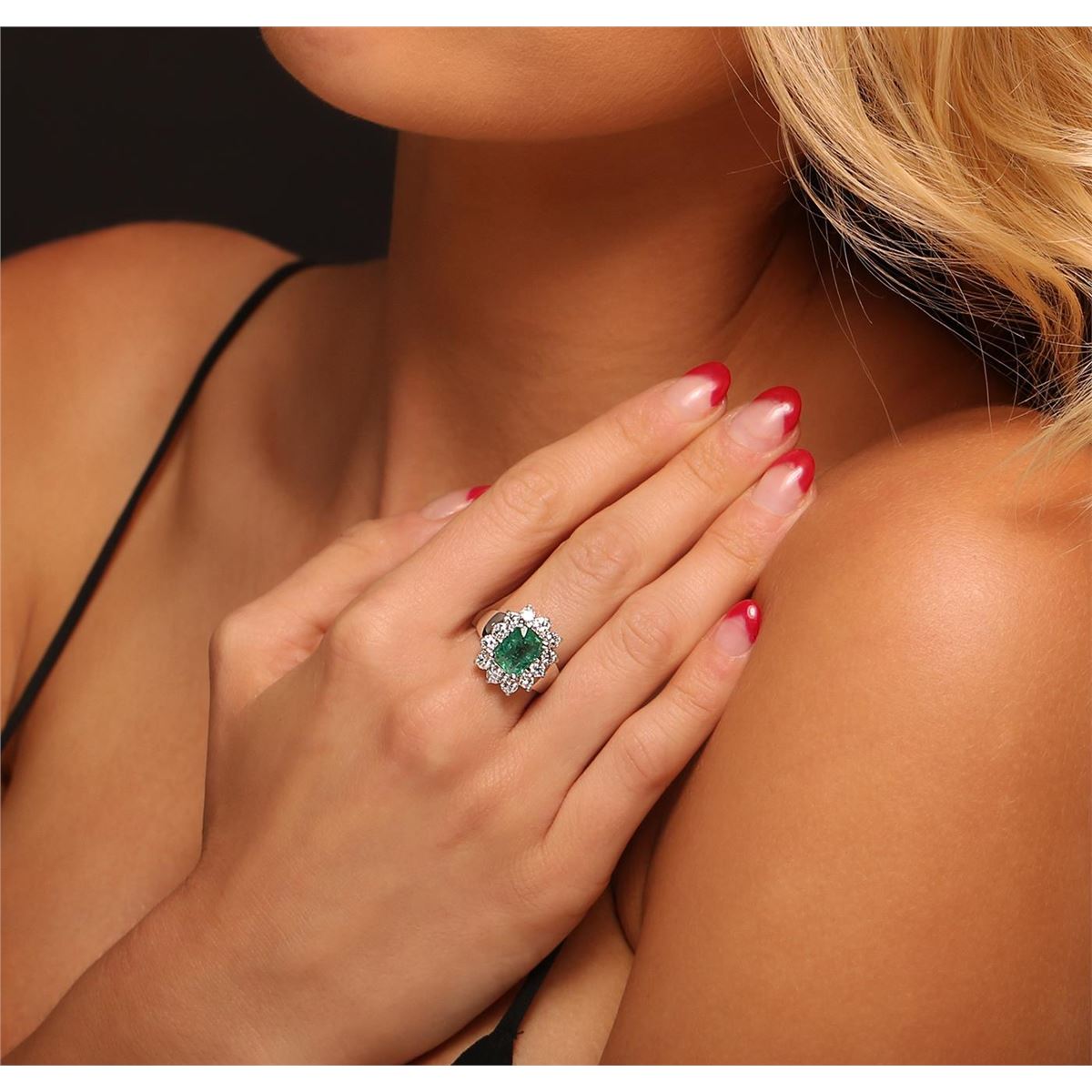 Great Condition! One electronically tested 14KT white gold Ladies combination cast & assembled fashion ring with a bright polish finish. Condition is new. Identified with markings of "14K". Containing: One prong set emerald standard step cut natural emerald, measuring 9.00 x 7.00 x 4.80mm, approximate weight of 2.22ct., clarity is heavily included, type III, medium light, very slightly grayish, bluish green color, (GIA bG 4/3), cut is good. Colored gemstones are presumed to have been subjected to commonly used and possible undetectable color/clarity enhancement processes. Twelve prong set round brilliant cut diamonds, measuring 3.00 - 3.00 x 1.80mm (depth est.) approximate total weight of 12 Stones = 1.19ct. Clarity of SI-1 to SI-2, Color of I - K, Cut is Good. Total Weight of Colored Stones 2.22ct. Total Weight of Diamonds 1.19ct. Total Weight of Ring 8.50 grams. GGL Appraised at $9,875.00.