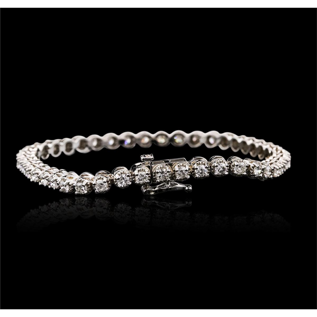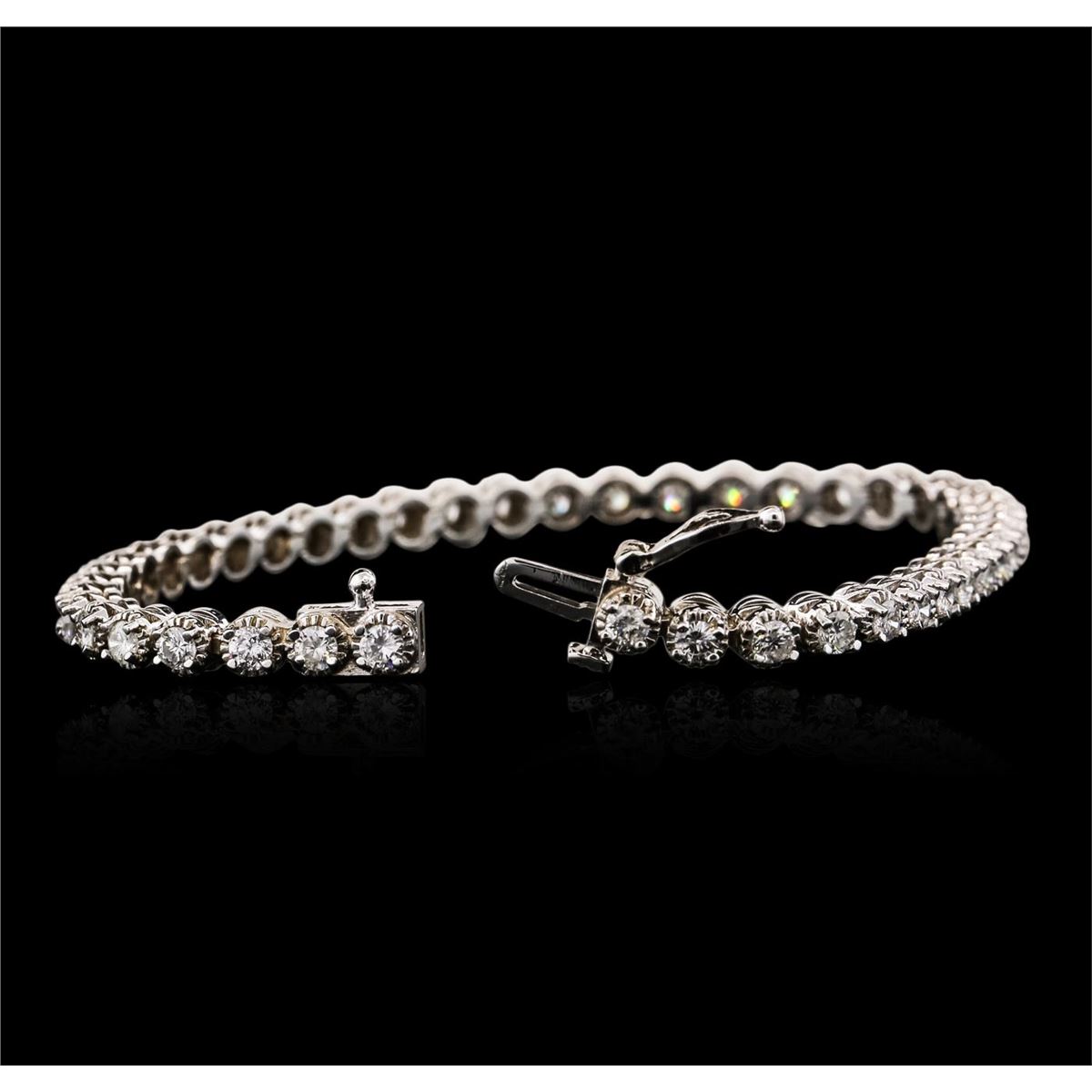 One electronically tested 14KT white gold ladies combination cast & assembled diamond tennis bracelet with a hidden box clasp with safety closer with a bright polish finish. Measurements: 7 in length. Identified with markings of 14K. Condition is new. Containing: Forty-Four prong set round brilliant cut diamonds, measuring 2.40 - 2.40 x 1.44mm (depth est.) approximate total weight of 44 Stones = 2.23ct. Clarity: SI-1 to I-1. Color: H - J, Cut is Good. All diamonds are graded in the mounting, unless otherwise stated. Total Weight of Diamonds 2.23ct. Total Weight of Tennis Bracelet 11.76 grams. GGL Appraised at $7,380.00.