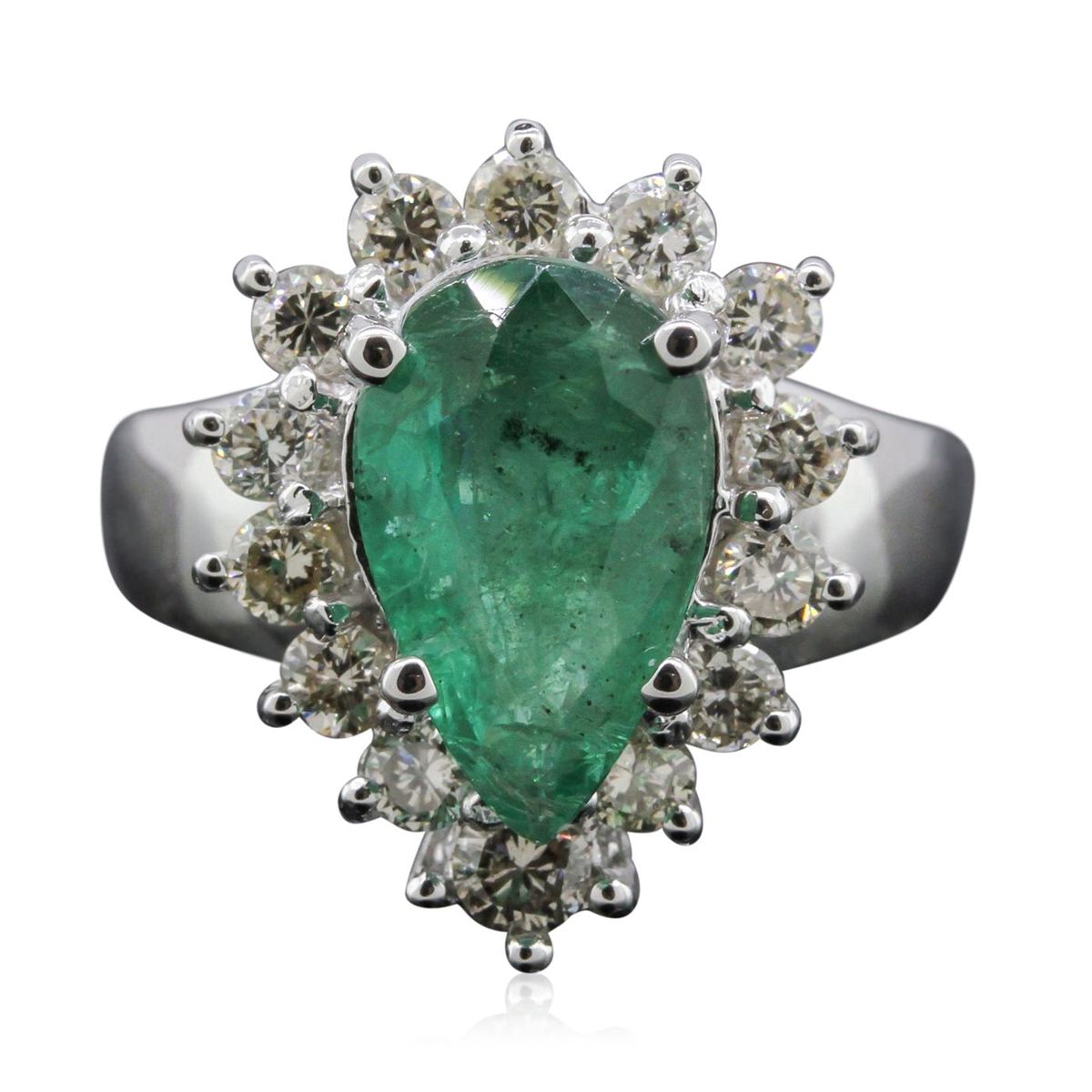One electronically tested 14KT white gold Ladies combination cast & assembled fashion ring with a high polish finish. Condition is new. Identified with markings of "14K". Containing: One prong set pear modified mixed cut natural emerald, measuring 12.50 x 7.80 x 4.20mm, approximate weight of 2.23ct., clarity is heavily included, type III, medium, very slightly grayish, very slightly bluish green color, (GIA vslbG 5/3), cut is good. Colored gemstones are presumed to have been subjected to commonly used and possible undetectable color/clarity enhancement processes. Fourteen prong set round brilliant cut diamonds, measuring 2.50 - 2.50 x 1.50mm (depth est.) approximate total weight of 14 Stones = 0.80ct. Clarity of SI-1 to I-1, Color of J - L, Cut is Good. Total Weight of Colored Stones 2.23ct. Total Weight of Diamonds 0.80ct. Total Weight of Ring 8.50 grams. GGL Appraised at $8,920.00.