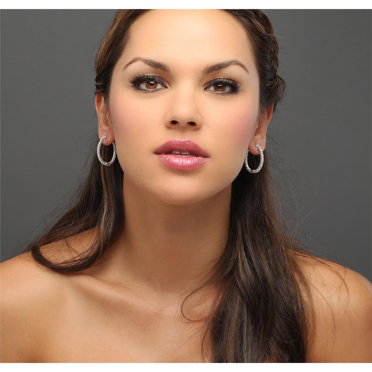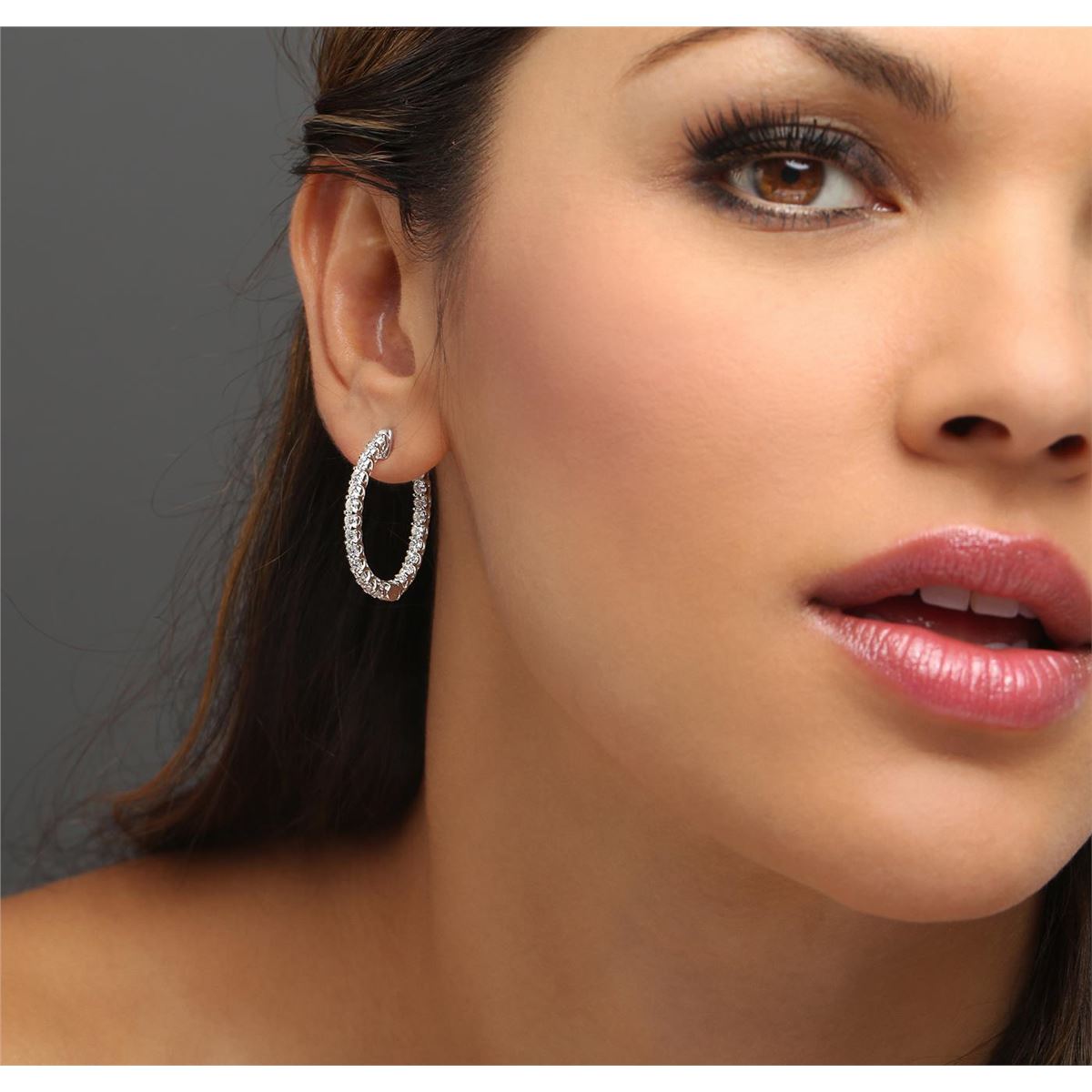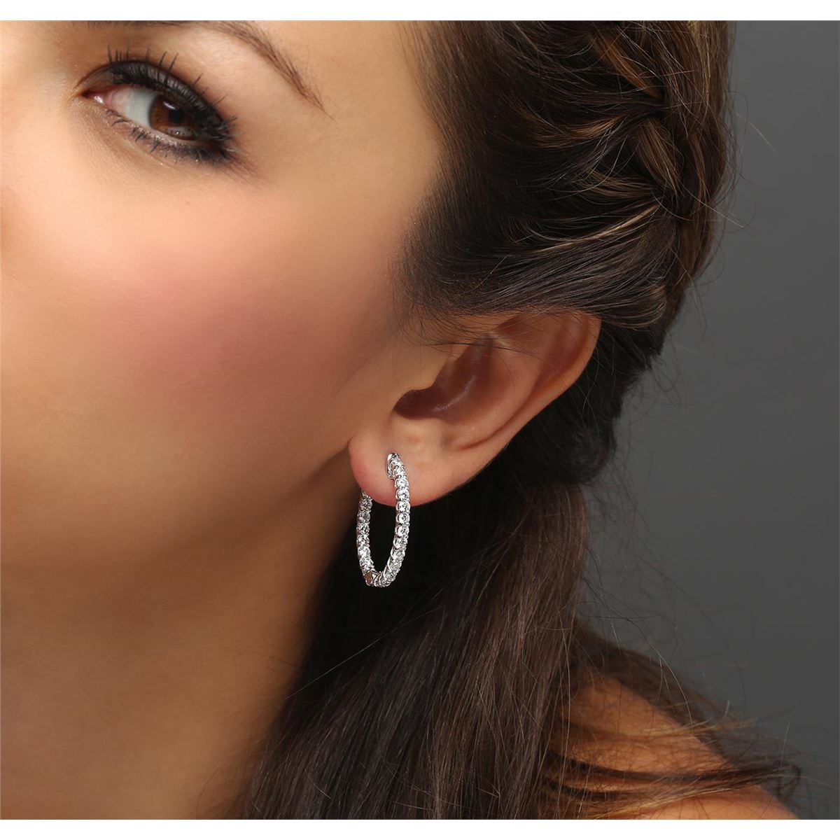 One pair electronically tested 14KT white gold ladies combination cast & assembled diamond hoop earrings with a bright polish finish. Identified with markings of "14K". Condition is new. Containing: Forty-Four prong set round brilliant cut diamonds, measuring 2.40 - 2.40 x 1.44mm (depth est.) approximate total weight of 44 Stones = 2.23ct. Clarity: SI-2 to I-1. Color: I - J, Cut is Good. All diamonds are graded in the mounting, unless otherwise stated. Total Weight of Diamonds 2.23ct. Total Weight of Earrings 7.86 grams. GGL Appraised at $7,445.00.