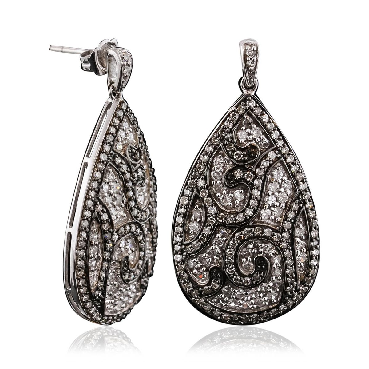 One pair of earrings featuring: 9.7 grams of 14KT white gold, diamonds with a total weight of 2.28ct.