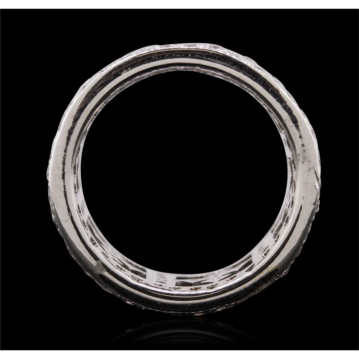 One electronically tested 14KT white gold ladies cast diamond ring with a bright polish finish. Condition is new, good workmanship. The continuous thirteen millimeter wide ring features a diamond set stylized open medieval cross design supported by mirroring diamond ribbons. Identified with markings of "14K". Containing: One Hundred Ninety-Eight bead set round brilliant cut diamonds, measuring 1.50 - 1.40 x 0.87mm (depth est.) approximate. Total Weight of 198 Stones = 2.30ct. The clarity grade reflects the entire range of clarity for this group. Graded in the setting. Clarity: SI-2 to I-3 . Color: G - I. Total Weight of Diamonds 2.30ct.. Total Weight of Ring 12.27 grams. AIG Appraised at $8,170.00.