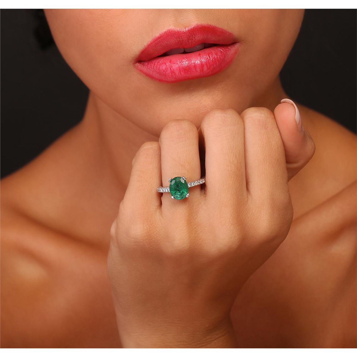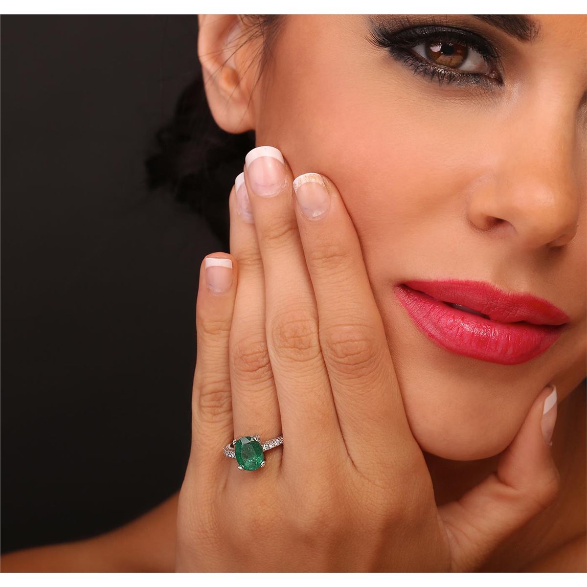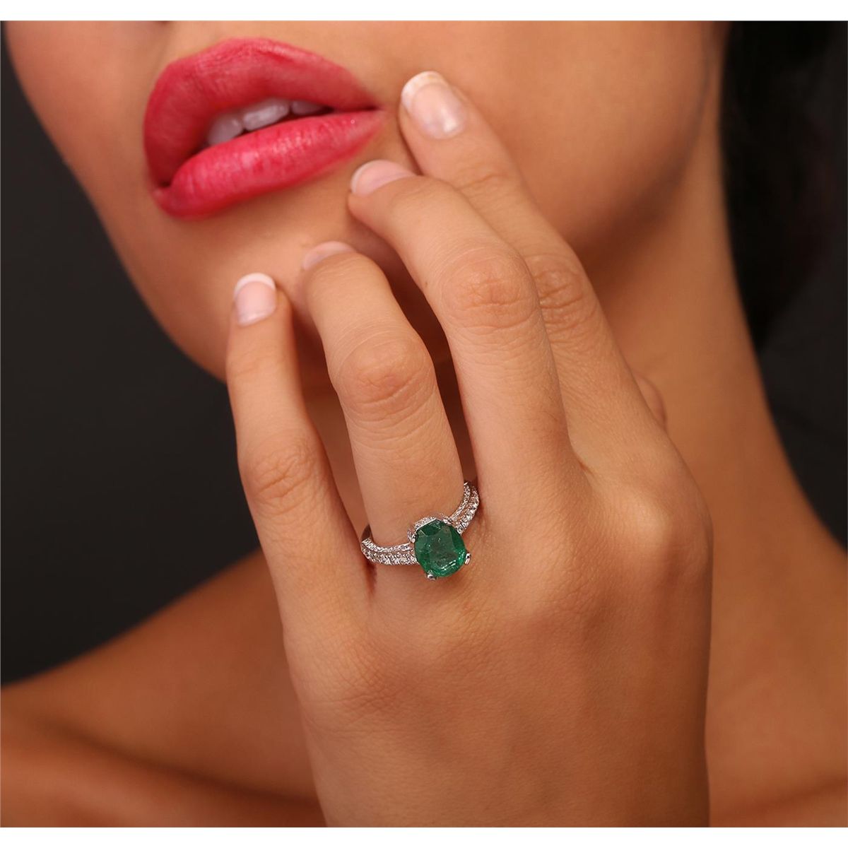 One electronically tested 14KT white gold Ladies combination cast & assembled ring with a bright polish finish. Condition is new. Identified with markings of "14K". Containing: One prong set oval modified brilliant cut natural emerald, measuring 9.90 x 8.10 x 5.27mm, approximate weight of 2.32ct., clarity is heavily included, type III, medium, moderately strong, green color, (GIA G 5/4), cut is good. Colored gemstones are presumed to have been subjected to commonly used color/clarity enhancement processes. Eighty-Six prong set round brilliant cut diamonds, measuring 1.10 - 1.60 x 0.81mm (depth est.) approximate. Total Weight of 86 Stones = 0.50ct. Clarity: I-1. Color: I - J, Cut is Good. Total Weight of Colored Stones 2.32ct. Total Weight of Diamonds 0.50ct. Total Weight of Ring 4.20 grams. GGL Appraised at $7,605.00.