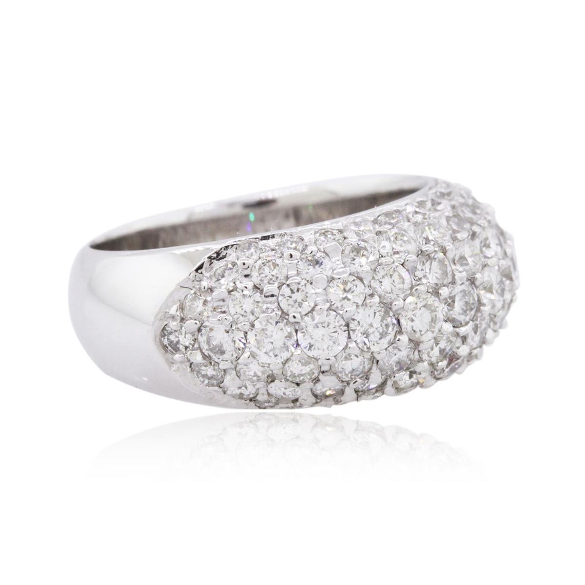 One electronically tested 14KT white gold ladies combination cast & assembled diamond ring with a bright polish finish. Identified with markings of "14K". Condition is new. Containing: Eighty bead set round brilliant cut diamonds, measuring 2.50 - 1.50 x 1.20mm (depth est.) approximate total weight of 80 Stones = 2.34ct. Clarity: SI-2 to I-1. Color: I - J, Cut is Good. All diamonds are graded in the mounting, unless otherwise stated. Total Weight of Diamonds 2.34ct. Total Weight of Ring 7.80 grams. GGL Appraised at $6,365.00.