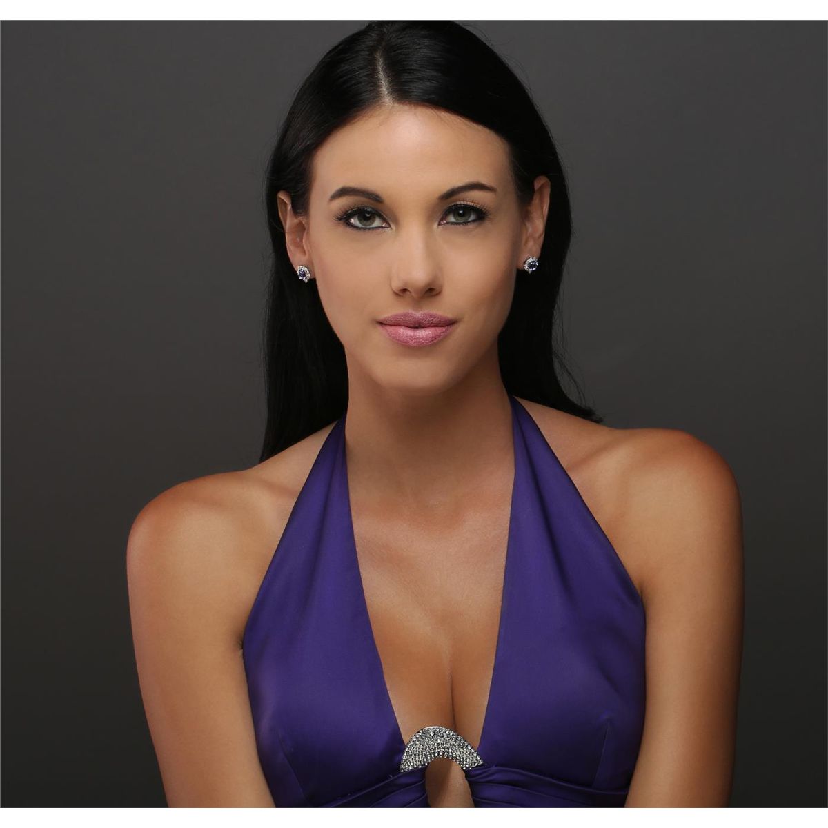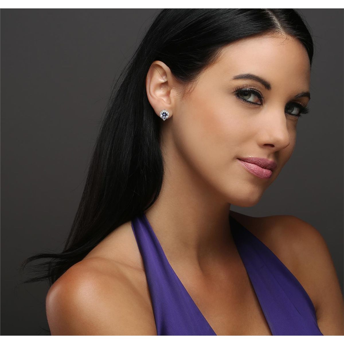 One pair electronically tested 14KT white gold ladies cast & assembled tanzanite and diamond earrings with standard backs. Bright polish finish. Trademark is Orianne. Identified with markings of "14K". Condition is new, good workmanship. Containing: Two prong set round brilliant cut natural tanzanites, measuring 6.50 - 6.40 x 4.19 mm, approximate total weight of 2.38ct., clarity is eye clean, type I, medium, very slightly grayish, bluish violet color, (GIA bV 5/3), cut is good. Transmitting light with no distortion, transparent. The color grade is an average for the pair. Graded in the setting. Tanzanite is a very rare gemstone that is only found in the country of Tanzania. Originally discovered in 1967. Tiffany & Company, named the stone Tanzanite. It is found in the Usumburu Mountains that border the Umba Valley of northern Tanzania. Tanzanite occurs in gray, brown, violet, blue, reddish-purple, & green. The gem is interesting because of its exceptional pleochroism. Rotated in different directions a tanzanite will exhibit multiple changes of color. Tanzanite has a low tolerance to ultrasonic cleaning, and should not be cleaned using this method. Four prong set round brilliant cut diamonds, measuring 2.60 - 2.50 x 1.53mm (depth est.) approximate total weight of 4 Stones = 0.30ct. Graded in the setting. Clarity: I-1 to I-2. Color: H - I Twenty-Eight prong set round brilliant cut diamonds, measuring 1.50 - 1.40 x 0.87mm (depth est.) approximate total weight of 28 Stones = 0.40ct. Graded in the setting. Clarity: I-1 to I-3. Color: H - J. Total Weight of Colored Stones 2.38ct. Total Weight of Diamonds 0.70ct. Total Weight of Earrings 3.33gm. AIG Appraised at $5,255.00.
