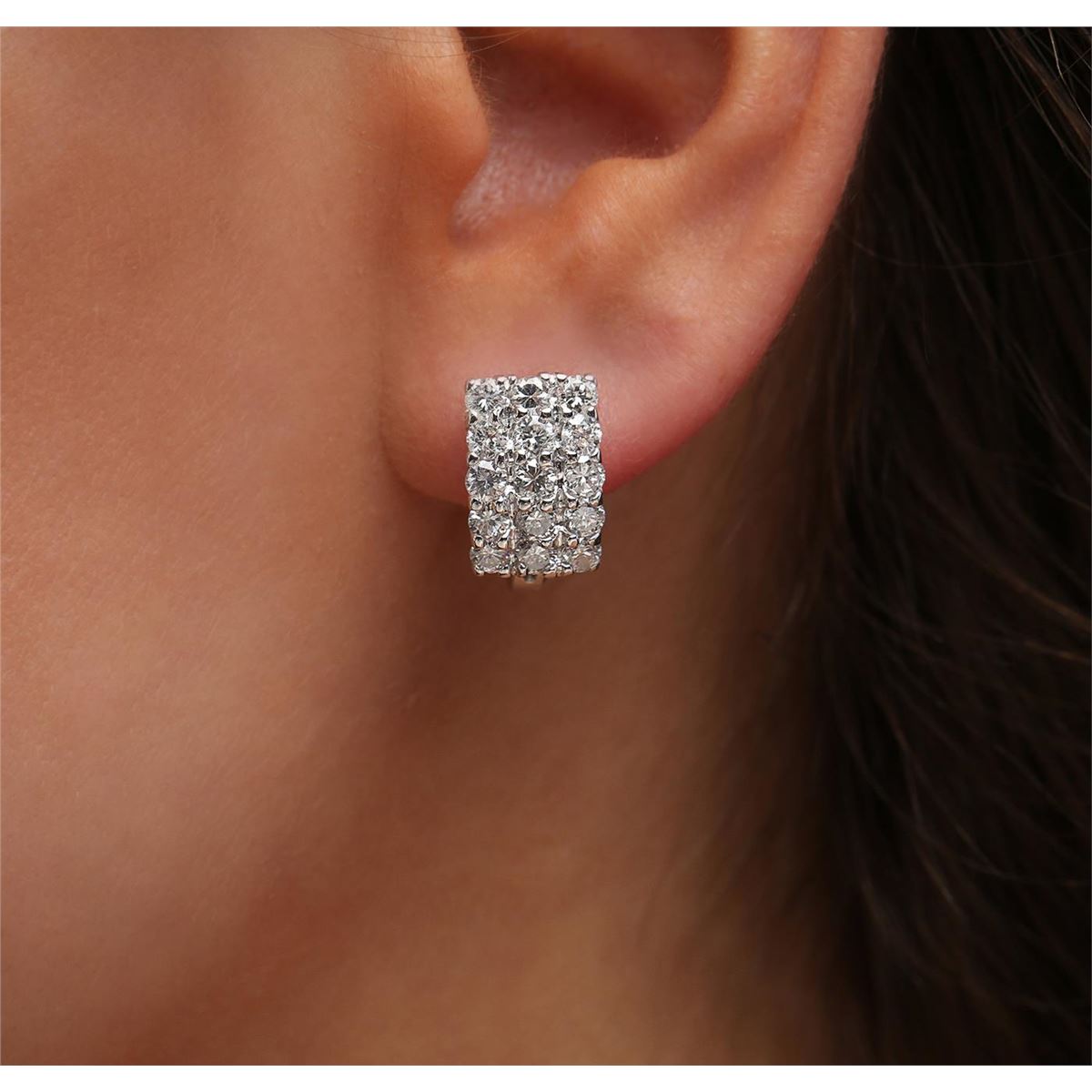 One pair electronically tested 14KT white gold ladies combination cast & assembled diamond earrings with lever backs with a bright polish finish. Identified with markings of "14K". Condition is new. Containing: Thirty prong set round brilliant cut diamonds, measuring 2.80 - 2.80 x 1.68mm (depth est.) approximate total weight of 30 Stones = 2.41ct. Clarity: I-1 to I-2. Color: I - J, Cut is Good. All diamonds are graded in the mounting, unless otherwise stated. Total Weight of Diamonds 2.41ct. Total Weight of Earrings 7.40 grams. GGL Appraised at $6,335.00.