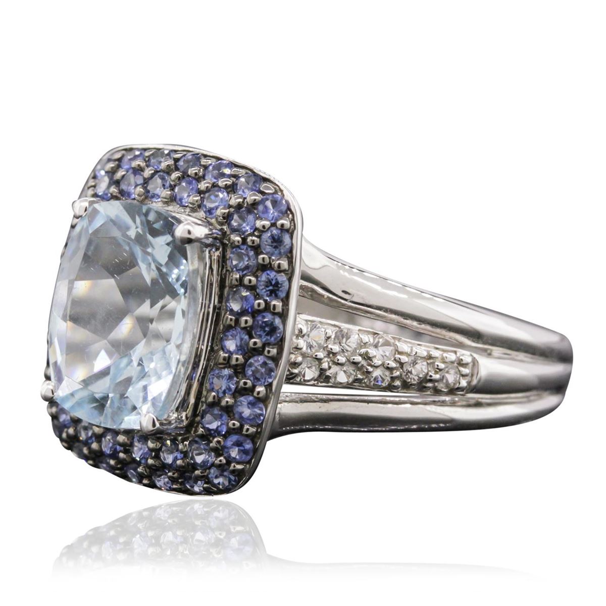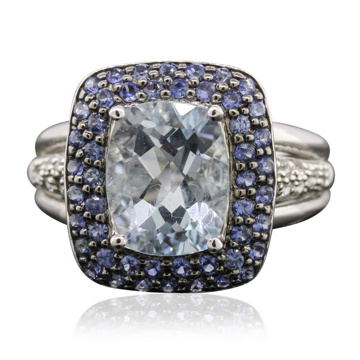One ring featuring: 14KT white gold with a total weight of 4.24 grams, (1) aquamarine with a total weight of 2.42ct, and (48) blue sapphires with a total weight of 0.56ctw, and (20) diamonds.