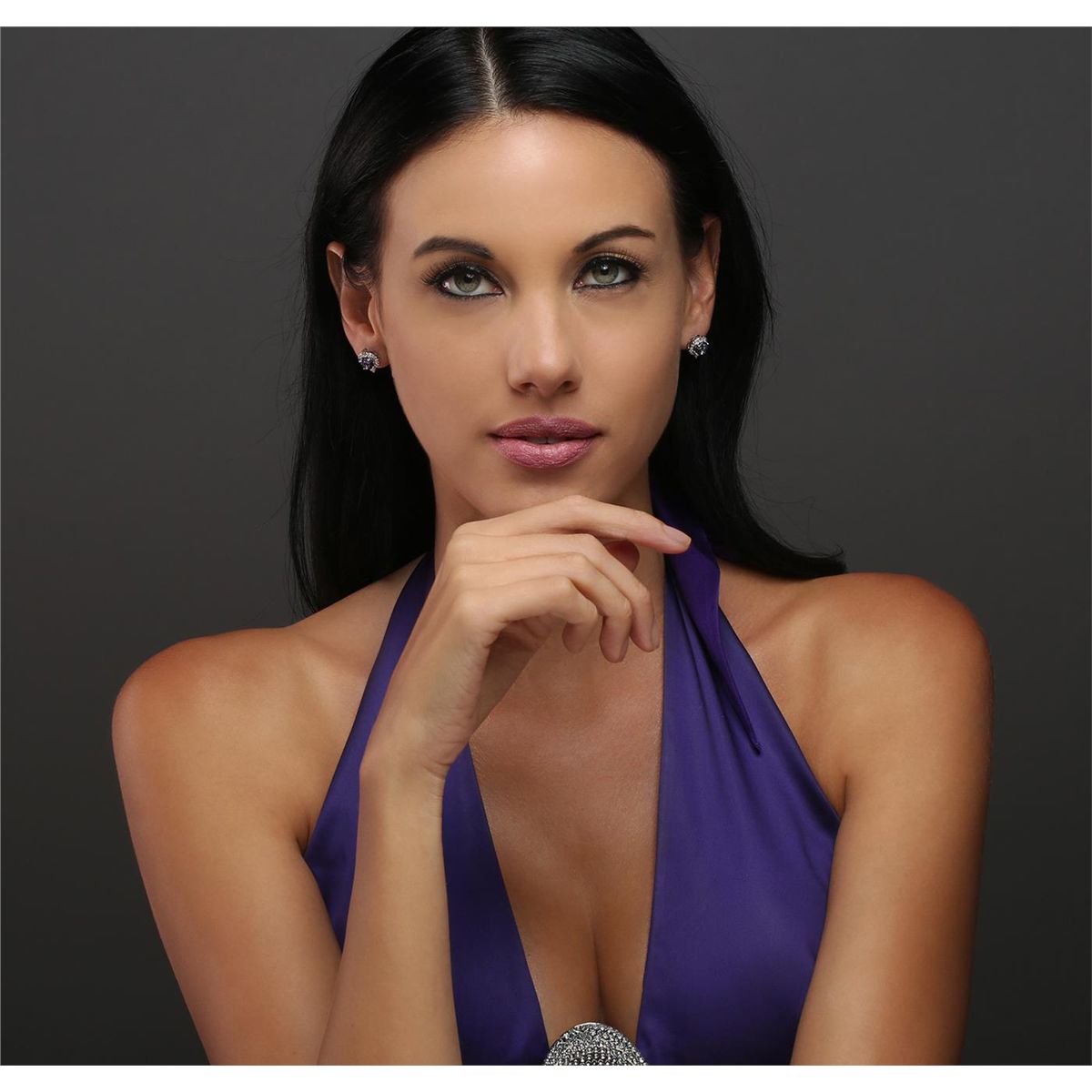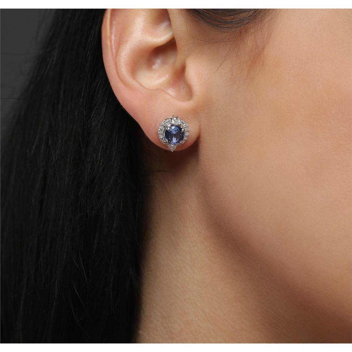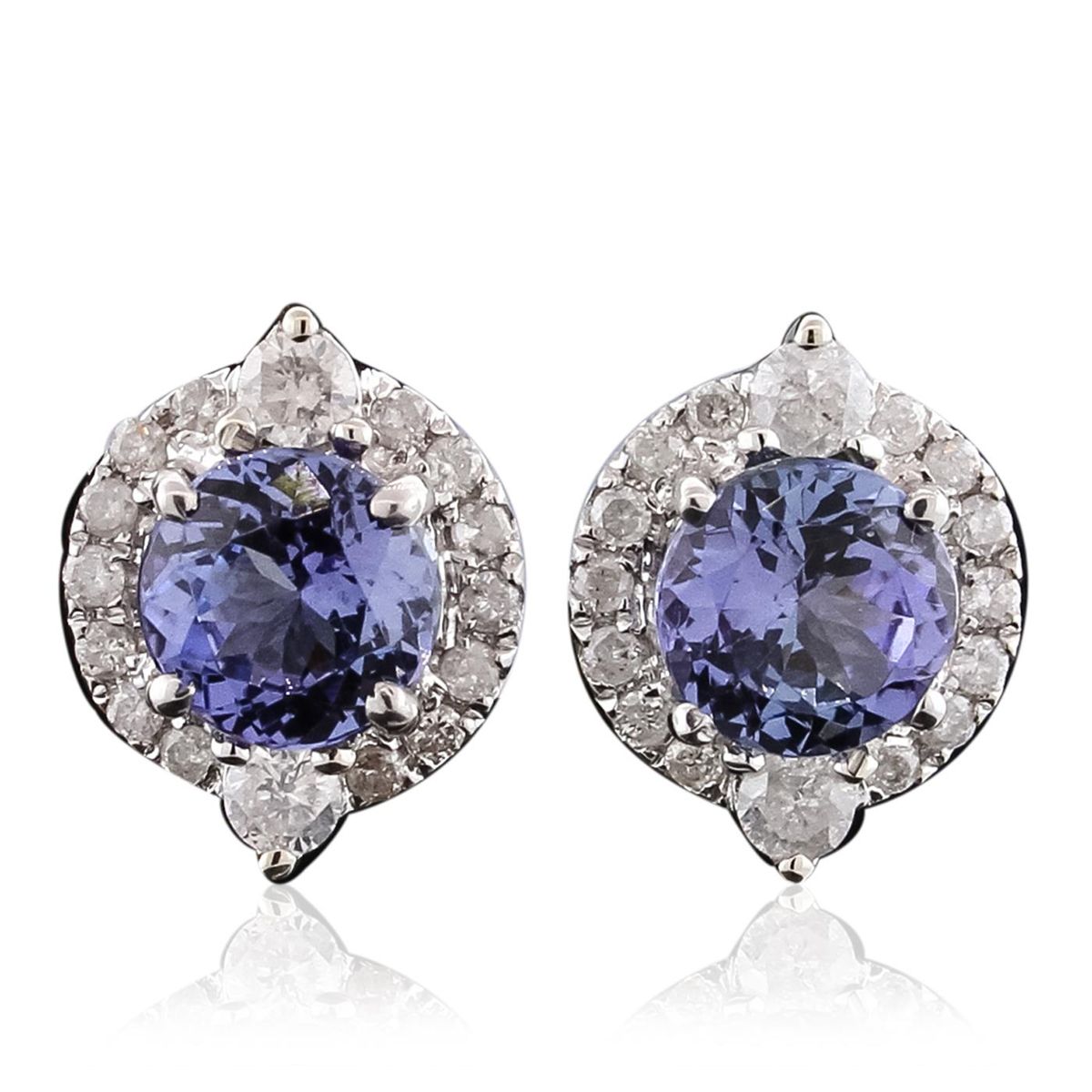 One pair electronically tested 14KT white gold ladies cast & assembled tanzanite & diamond earrings with standard backs. Each earring features a tanzanite set within a tiered diamond bezel. Trademark is Orianne. Identified with markings of "14K". Condition is good. Containing: Two prong set round mixed cut natural tanzanites, measuring 6.50 - 6.30 x 4.00 mm, 8% bulge factor, approximate total weight of 2.44ct., clarity is eye clean, type I, dark, slightly grayish, violetish blue color, (GIA vB 7/2), cut is good. Measurements are an average for the pair. Transmitting light with no distortion, transparent. Graded in the setting. Tanzanite is a very rare gemstone that is only found in the country of Tanzania. Originally discovered in 1967. Tiffany & Company, named the stone Tanzanite. It is found in the Usumburu Mountains that border the Umba Valley of northern Tanzania. Tanzanite occurs in gray, brown, violet, blue, reddish-purple, & green. The gem is interesting because of its exceptional pleochroism. Rotated in different directions a tanzanite will exhibit multiple changes of color. Tanzanite has a low tolerance to ultrasonic cleaning, and should not be cleaned using this method. Four prong set round brilliant cut diamonds, measuring 2.60 - 2.50 x 1.53mm (depth est.) approximate total weight of 4 Stones = 0.24ct. Graded in the setting. Clarity: I-1 to I-2. Color: H - J Twenty-Eight prong set round brilliant cut diamonds, measuring 1.35 - 1.30 x 0.80mm (depth est.) approximate total weight of 28 Stones = 0.24ct. Graded in the setting. Clarity: I-1 to I-3. Color: H - I. Total Weight of Colored Stones 2.44ct. Total Weight of Diamonds 0.48ct. Total Weight of Earrings 3.30gm. AIG Appraised at $4,950.00.