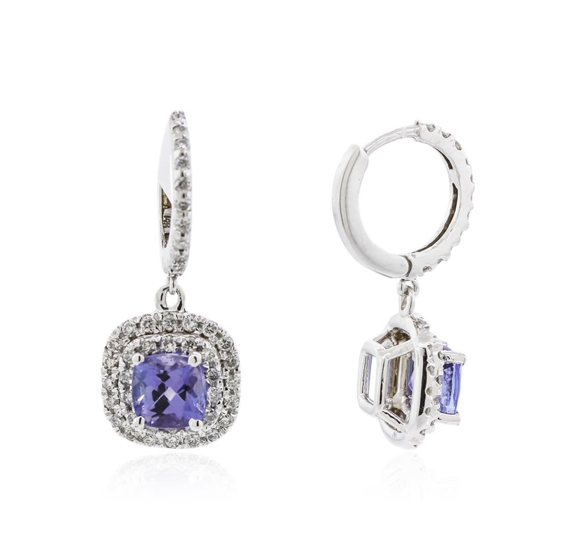 14KT White Gold 2.45 ctw Tanzanite and Diamond Earrings