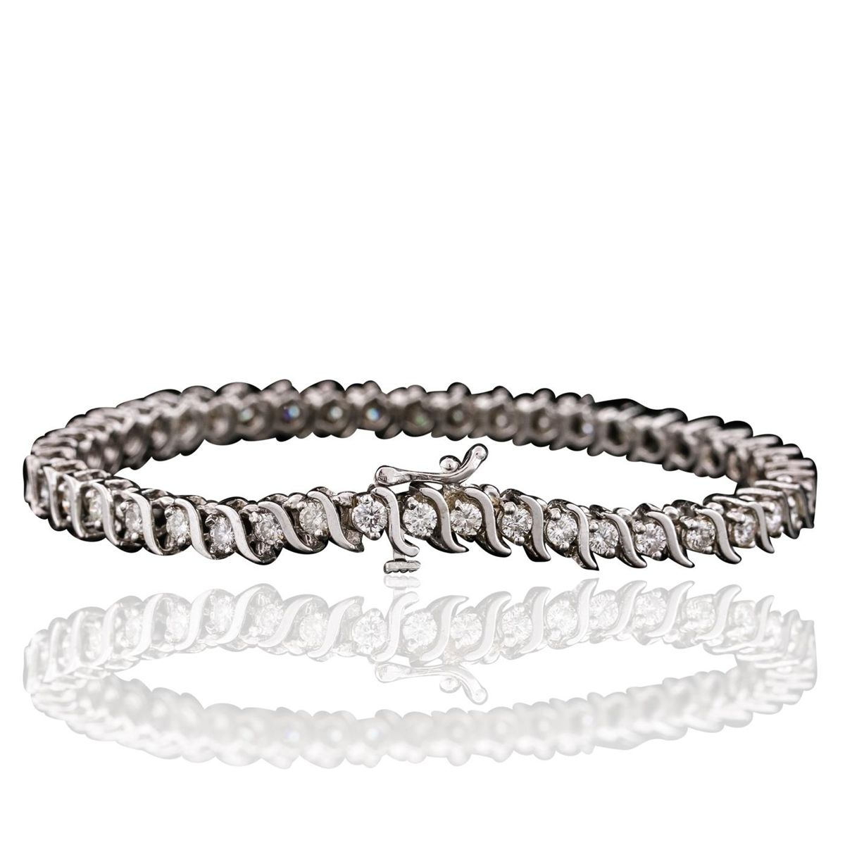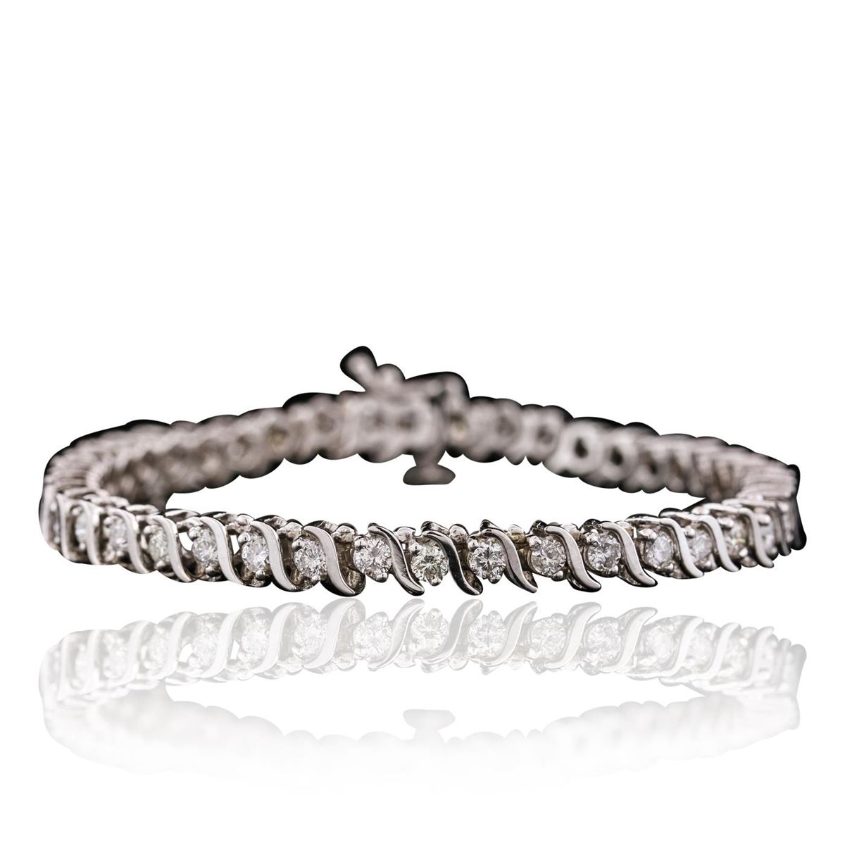 One electronically tested 14KT white gold ladies combination cast & assembled tennis bracelet with a hidden box clasp with a bright polish finish. Measurements: 6.85" in length Identified with markings of "14K". Condition is new. Containing: Forty-Three prong set round brilliant cut diamonds, measuring 2.50 - 2.50 x 1.50mm (depth est.) approximate total weight of 43 Stones = 2.46ct. Clarity: SI-1 to SI-2. Color: H - I, Cut is Good. All diamonds are graded in the mounting, unless otherwise stated. Total Weight of Diamonds 2.46ct. Total Weight of Bracelet 14.90 grams. GGL Appraised at $13,515.00.