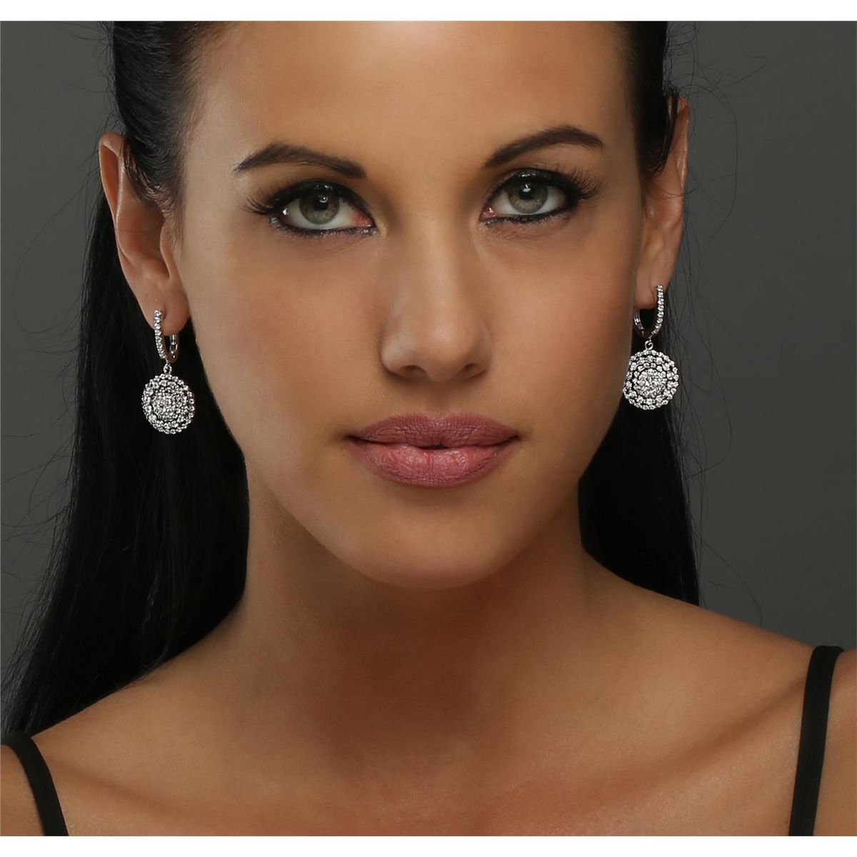 One pair electronically tested 14KT white gold ladies combination cast & assembled dangle earrings with hinged clip backs with a bright polish finish. Identified with markings of "14K". Condition is new. Containing: Two prong set round brilliant cut diamonds, measuring 3.50 - 3.50 x 2.10mm (depth est.) approximate total weight of 2 Stones = 0.31ct. Clarity: SI-1 to SI-2. Color: G - H, Cut is Good. One Hundred Thirty-Two prong set round brilliant cut diamonds, measuring 2.00 - 1.30 x 0.99mm (depth est.) approximate total weight of 132 Stones = 2.17ct. Clarity: SI-1 to SI-2. Color: G - H, Cut is Good. All diamonds are graded in the mounting, unless otherwise stated. Total Weight of Diamonds 2.48ct. Total Weight of Earrings 11.60 grams. GGL Appraised at $12,915.00.