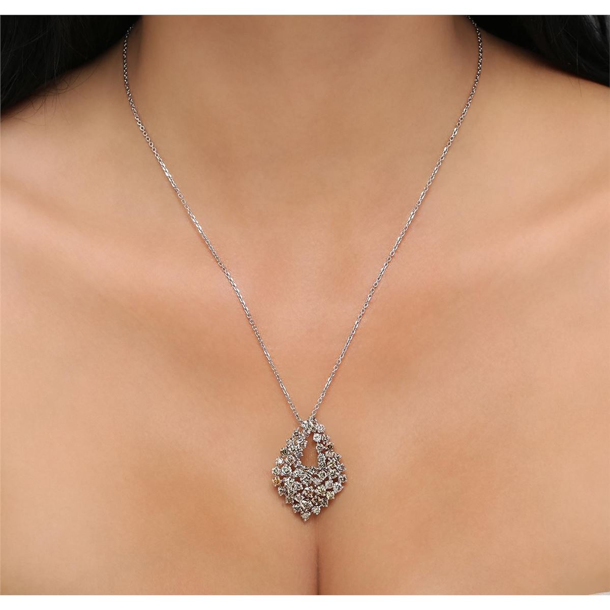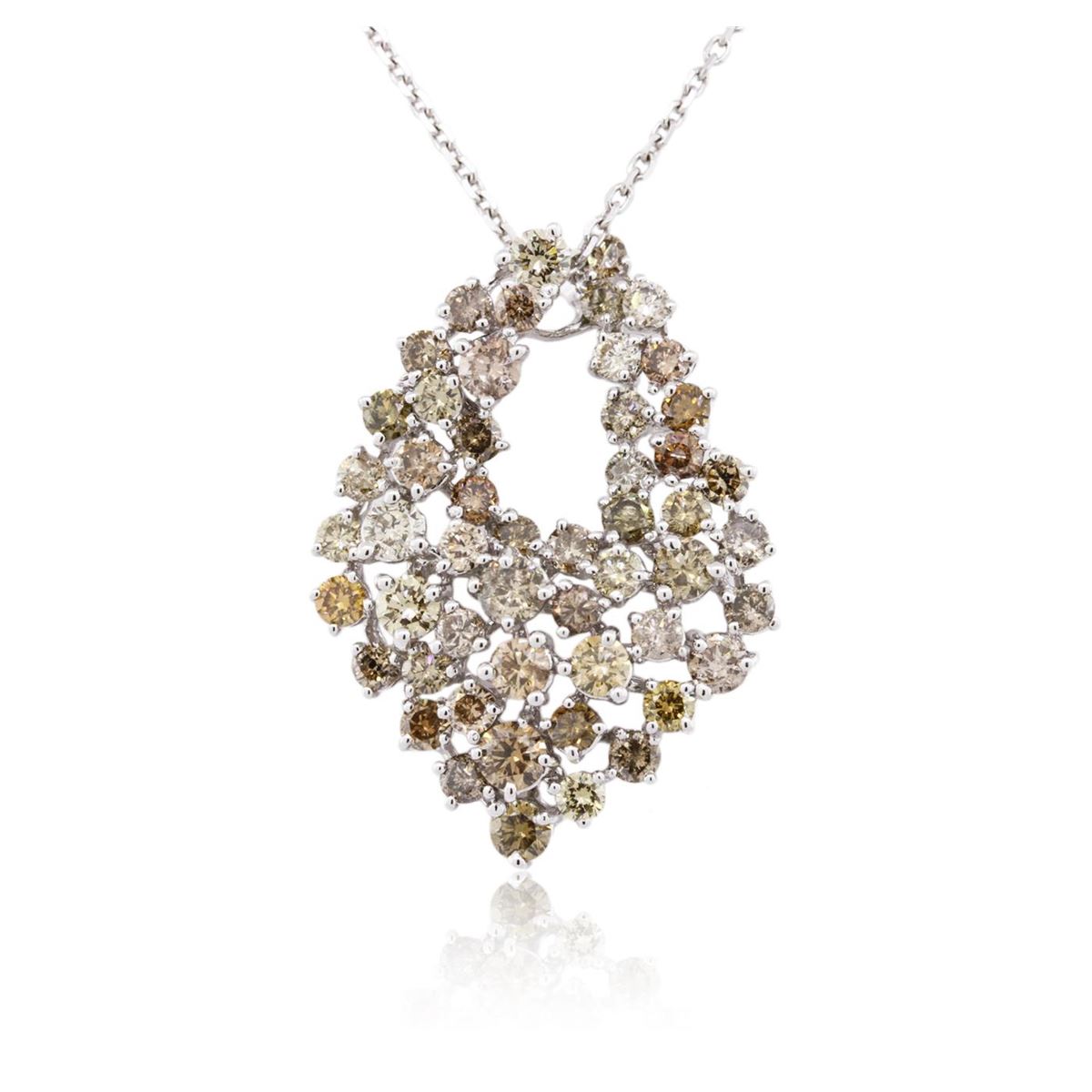 One electronically tested 14KT white gold ladies combination cast & assembled diamond pendant & chain 18.0" long, cable link with a lobster claw clasp with a bright polish finish. Identified with markings of "14K". Condition is new. Containing: Fifty-Two prong set round brilliant cut diamonds, measuring 3.20 - 2.00. x 1.56mm (depth est.) approximate total weight of 52 Stones = 2.48ct. Clarity: SI-2 to I-2, Cut is Good. All diamonds are graded in the mounting, unless otherwise stated. Total Weight of Diamonds 2.48ct. Total Weight of Pendant & Chain 8.50 grams. GGL Appraised at $6,190.00.