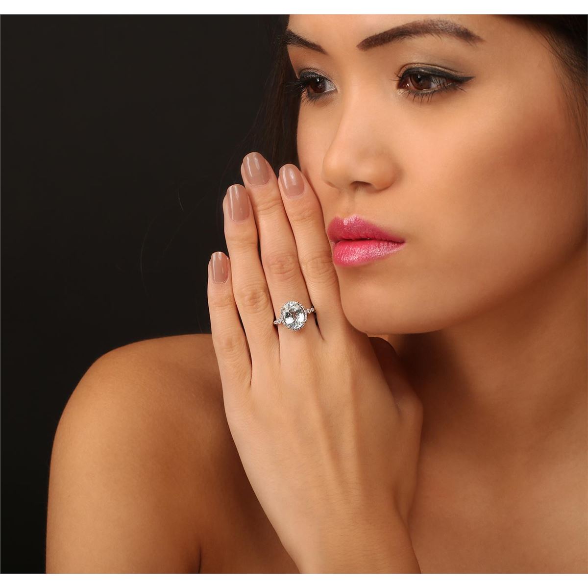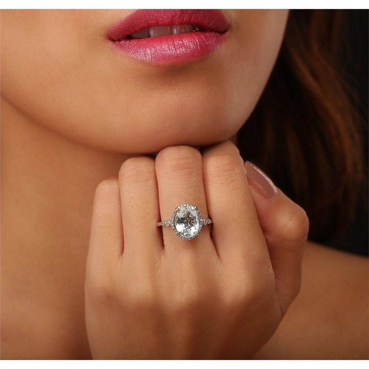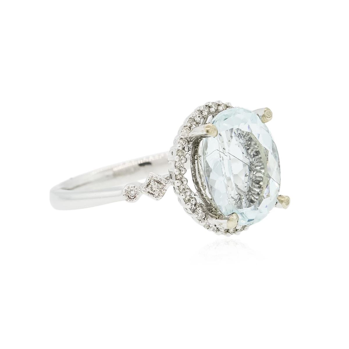 One electronically tested 14KT white gold ladies combination cast & assembled ring with a bright polish finish. Condition is new. Identified with markings of "14K". Containing: One prong set oval modified brilliant cut natural aquamarine, measuring 11.20 x 8.70 x 4.73mm, approximate weight of 2.55ct., clarity is eye clean, type I, light, very slightly grayish, blue color, (GIA B 3/3), cut is good. Thirty-Six prong set round brilliant cut diamonds, measuring 1.00 - 1.00 x 0.60mm (depth est.) approximate total weight of 36 Stones = 0.13ct. Clarity: I-1 to I-2. Color: H - I, Cut is Good. Colored gemstones are presumed to have been subjected to commonly used enhancement processes. All diamonds and colored gemstones are graded in the mounting, unless otherwise stated. Total Weight of Colored Stones 2.55ct. Total Weight of Diamonds 0.13ct. Total Weight of Ring 3.90 grams. GGL Appraised at $3,250.00.