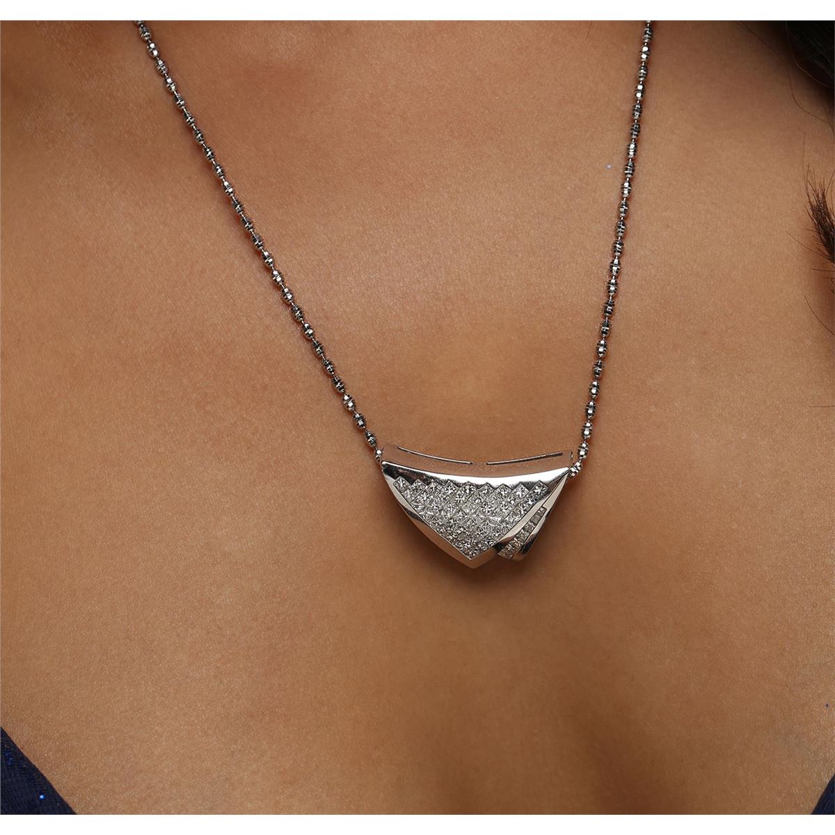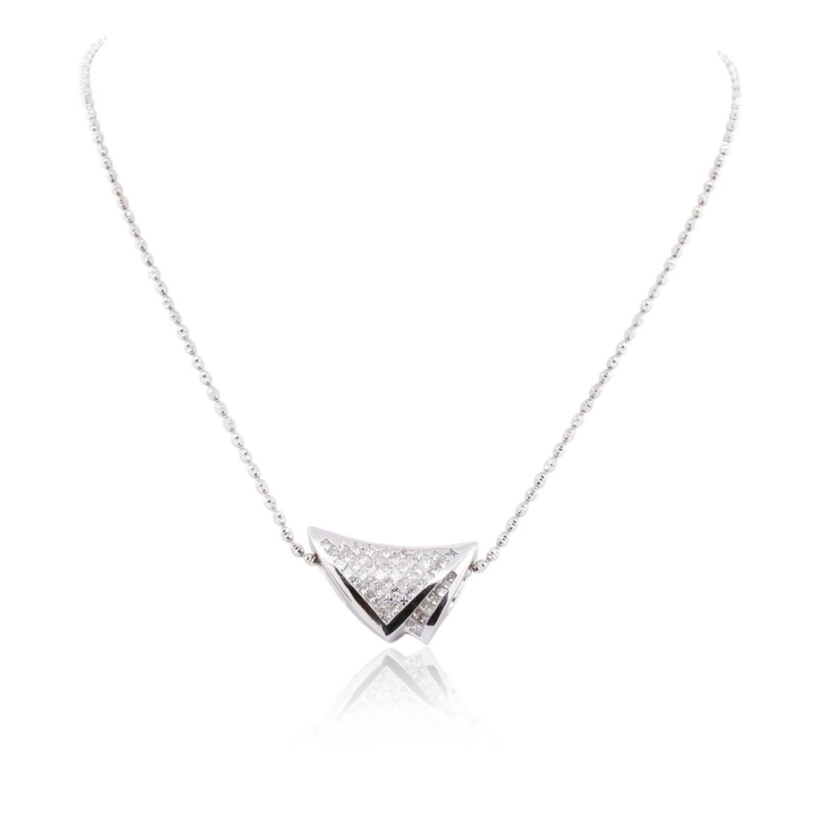 One electronically tested 14KT white gold ladies combination cast & die struck pendant & chain 18.0" long, medium fancy link with a lobster claw clasp with a bright polish finish. Identified with markings of "585". Condition is new. Containing: Fifty-Two invisible set princess cut diamonds, measuring 2.00 x 2.00 x 1.50mm (depth est.) approximate total weight of 52 Stones = 2.56ct. Clarity: SI-1. Color: I - J, Cut is Very Good. All diamonds are graded in the mounting, unless otherwise stated. Total Weight of Diamonds 2.56ct. Total Weight of Pendant & Chain 20.30 grams. GGL Appraised at $12,125.00.