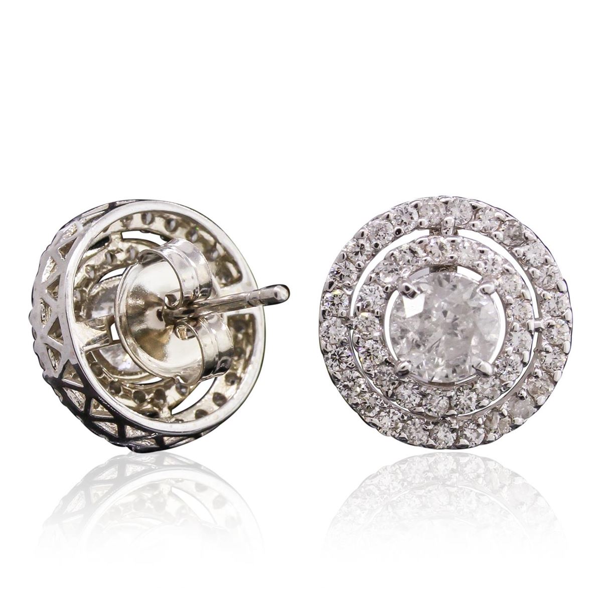 One pair electronically tested 14KT white gold Ladies combination cast & die struck stud earrings with friction posts with a bright polish finish. Condition is new. Containing: Two prong set round brilliant cut diamonds, measuring 6.16 - 6.14 x 3.69mm (depth est.) approximate. Total Weight of 2 Stones = 1.70ct. Clarity: I-2 to I-3. Color: H - I, Cut is Good. Eighty-Eight prong set round brilliant cut diamonds, measuring 1.40 - 1.40 x 0.84mm (depth est.) approximate. Total Weight of 88 Stones = 0.88ct. Clarity: I-1 to I-2. Color: H - I, Cut is Good. Total Weight of Diamonds 2.58ct. Total Weight of Earrings 4.40 grams. GGL Appraised at $10,000.00.