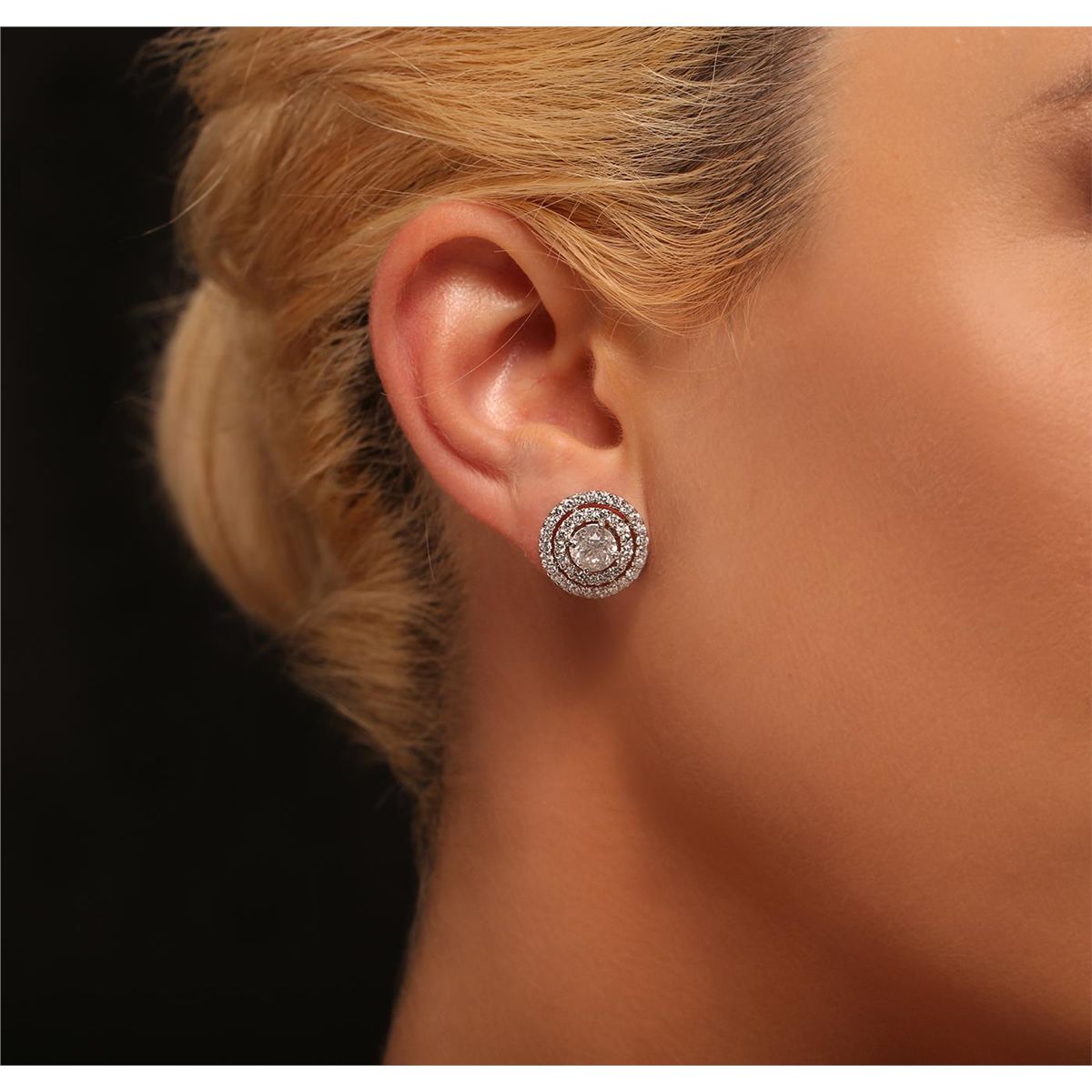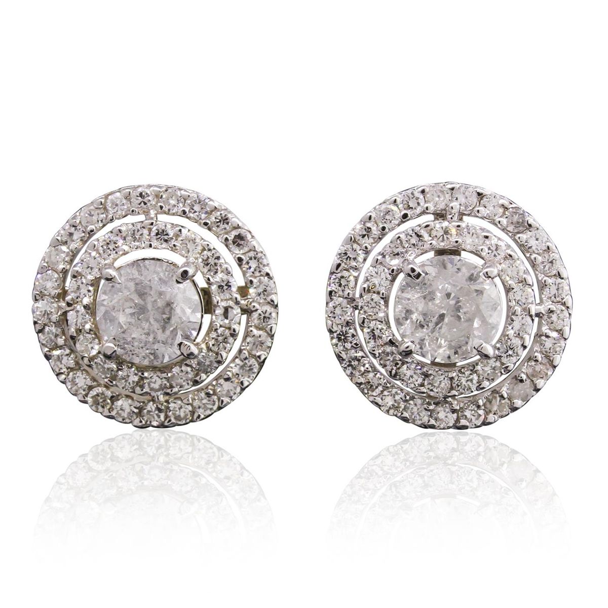 One pair electronically tested 14KT white gold Ladies combination cast & die struck stud earrings with friction posts with a bright polish finish. Condition is new. Containing: Two prong set round brilliant cut diamonds, measuring 6.16 - 6.14 x 3.69mm (depth est.) approximate. Total Weight of 2 Stones = 1.70ct. Clarity: I-2 to I-3. Color: H - I, Cut is Good. Eighty-Eight prong set round brilliant cut diamonds, measuring 1.40 - 1.40 x 0.84mm (depth est.) approximate. Total Weight of 88 Stones = 0.88ct. Clarity: I-1 to I-2. Color: H - I, Cut is Good. Total Weight of Diamonds 2.58ct. Total Weight of Earrings 4.40 grams. GGL Appraised at $10,000.00.