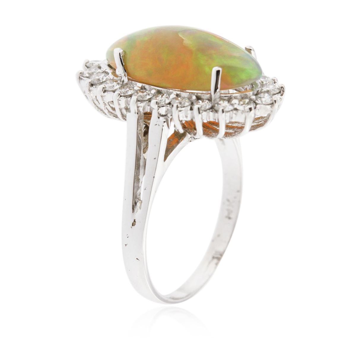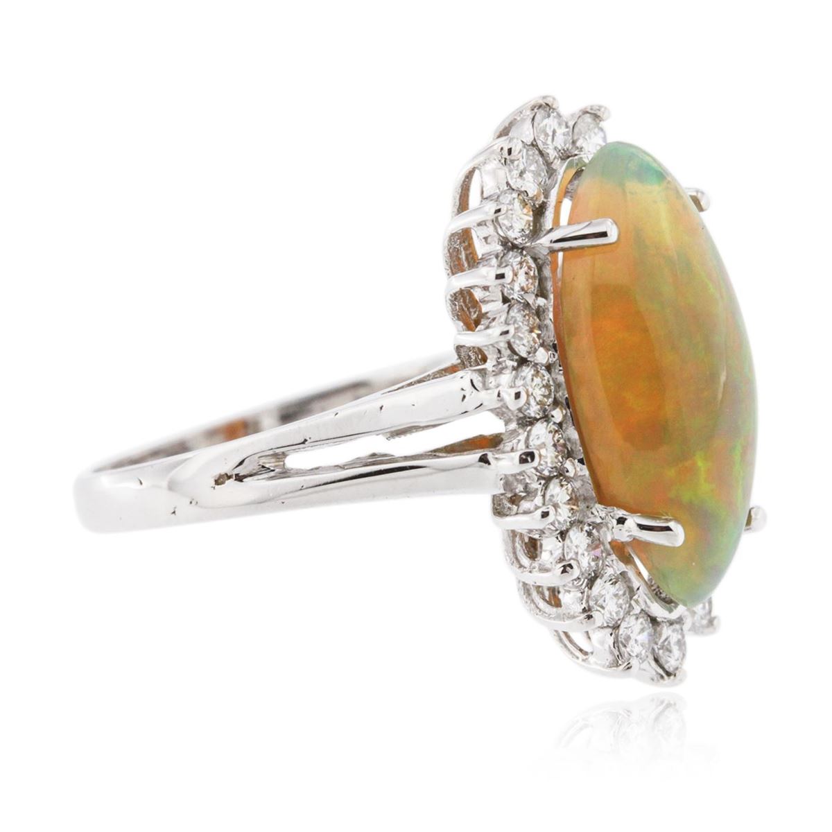 One ring featuring: 14KT white gold weighing 4.70 grams containing one opal center stone with a total weight of 2.61ct and prong set round diamonds with a total weight of 0.65ct.