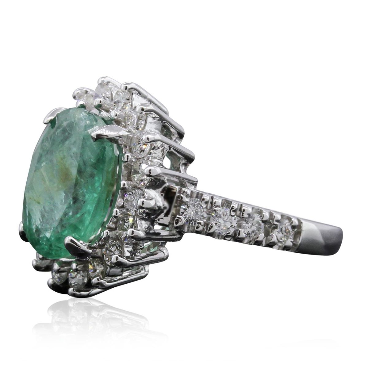 One electronically tested 14KT white gold Ladies combination cast & assembled fancy ring with a high polish finish. Condition is new. Identified with markings of "14K". Containing: One prong set oval modified brilliant cut natural emerald, measuring 11.40 x 8.80 x 4.70mm, approximate weight of 2.61ct., clarity is heavily included, type III, medium light, slightly grayish, bluish green color, (GIA bG 4/2), cut is good. Colored gemstones are presumed to have been subjected to commonly used and possible undetectable color/clarity enhancement processes. Twenty-Six bead set round brilliant cut diamonds, measuring 2.00 - 2.00 x 1.33mm (depth est.) approximate total weight of 26 Stones = 0.84ct. Clarity of I-1 to I-2, Color of J - K, Cut is Good. Total Weight of Colored Stones 2.61ct. Total Weight of Diamonds 0.84ct. Total Weight of Ring 5.80 grams. GGL Appraised at $8,645.00.