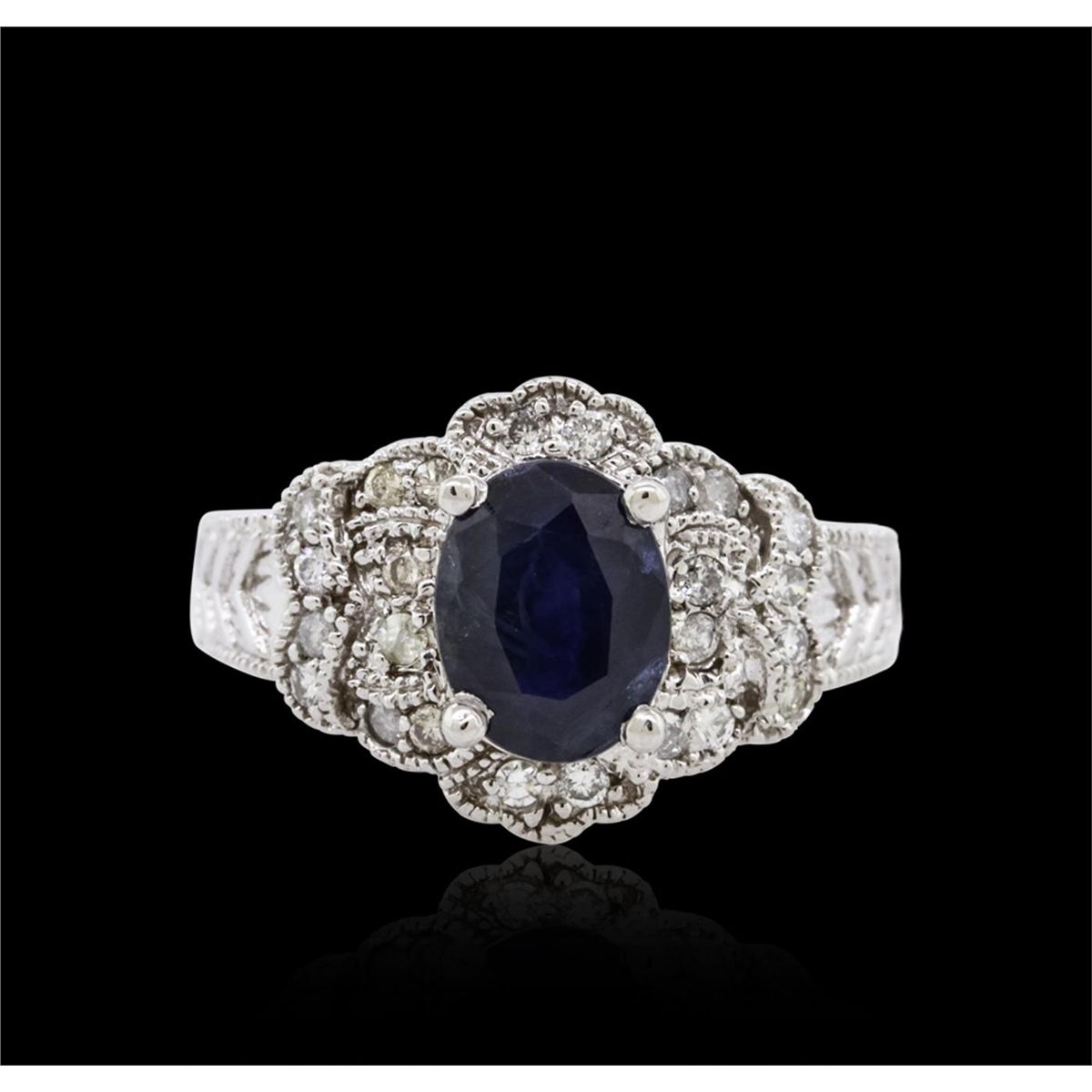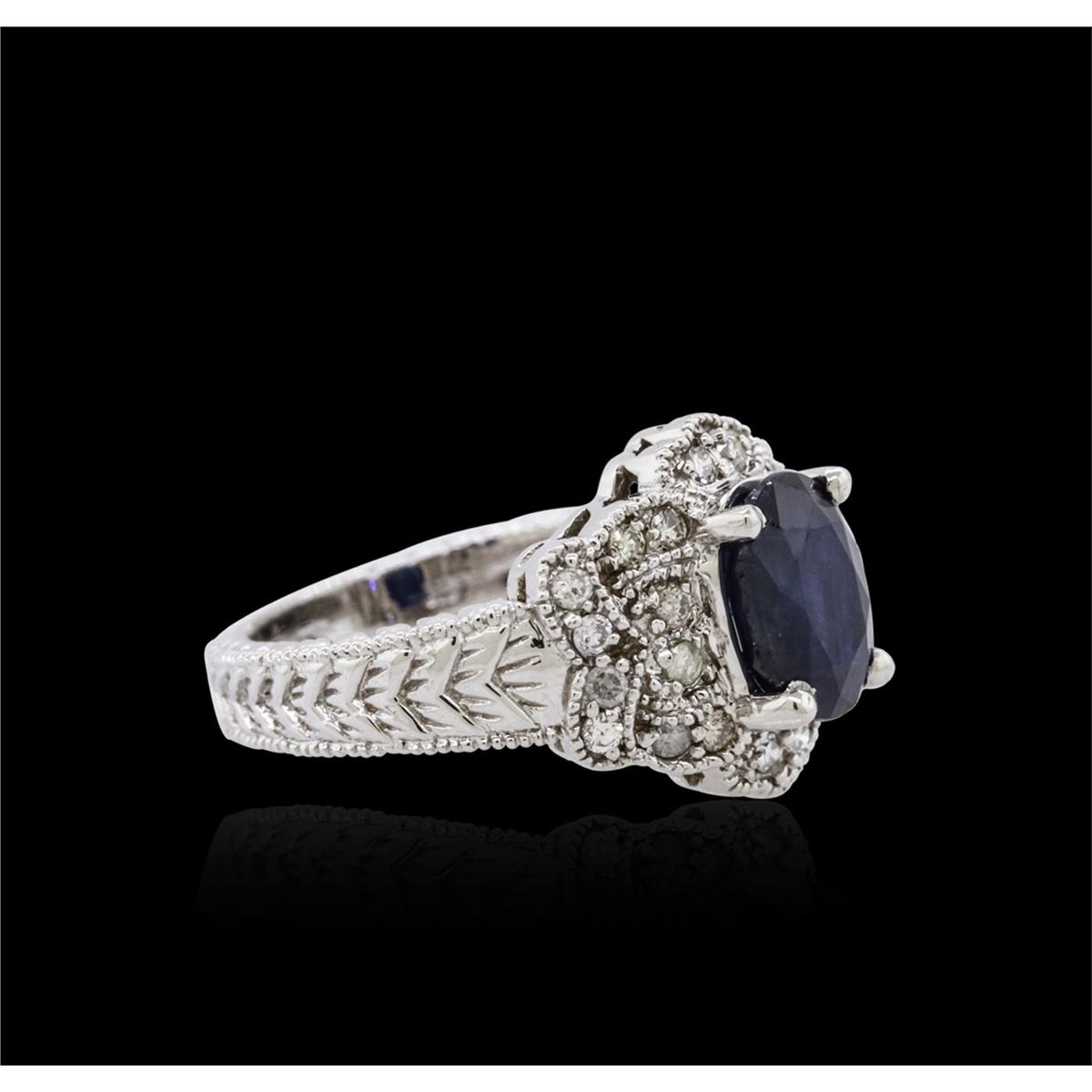 One ring featuring: 14KT white gold weighing 7.60 grams containing one prong set oval cut sapphire with a total weight of 2.63ct and pave set round cut diamonds with a total weight of 0.35cts.