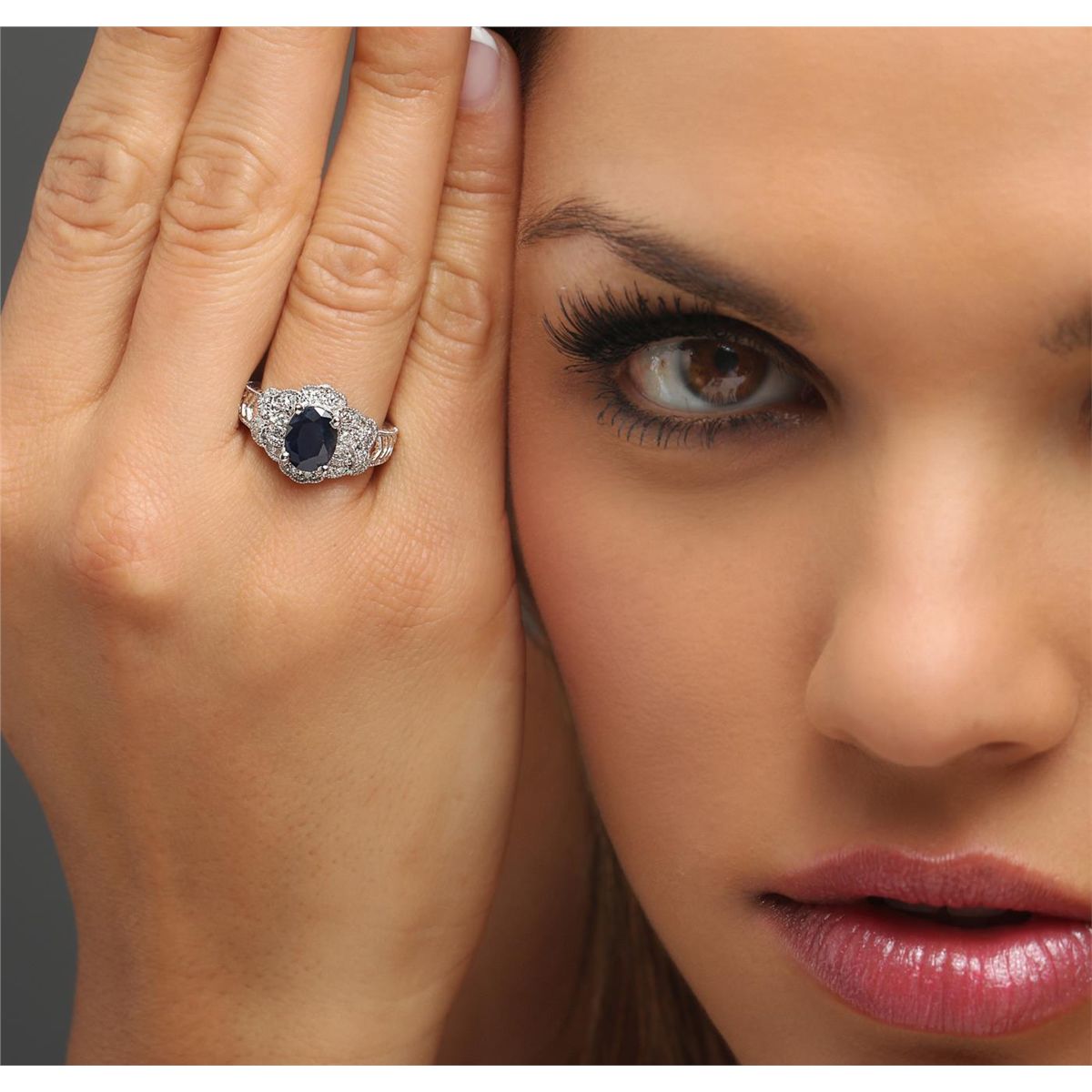 One ring featuring: 14KT white gold weighing 7.60 grams containing one prong set oval cut sapphire with a total weight of 2.63ct and pave set round cut diamonds with a total weight of 0.35cts.