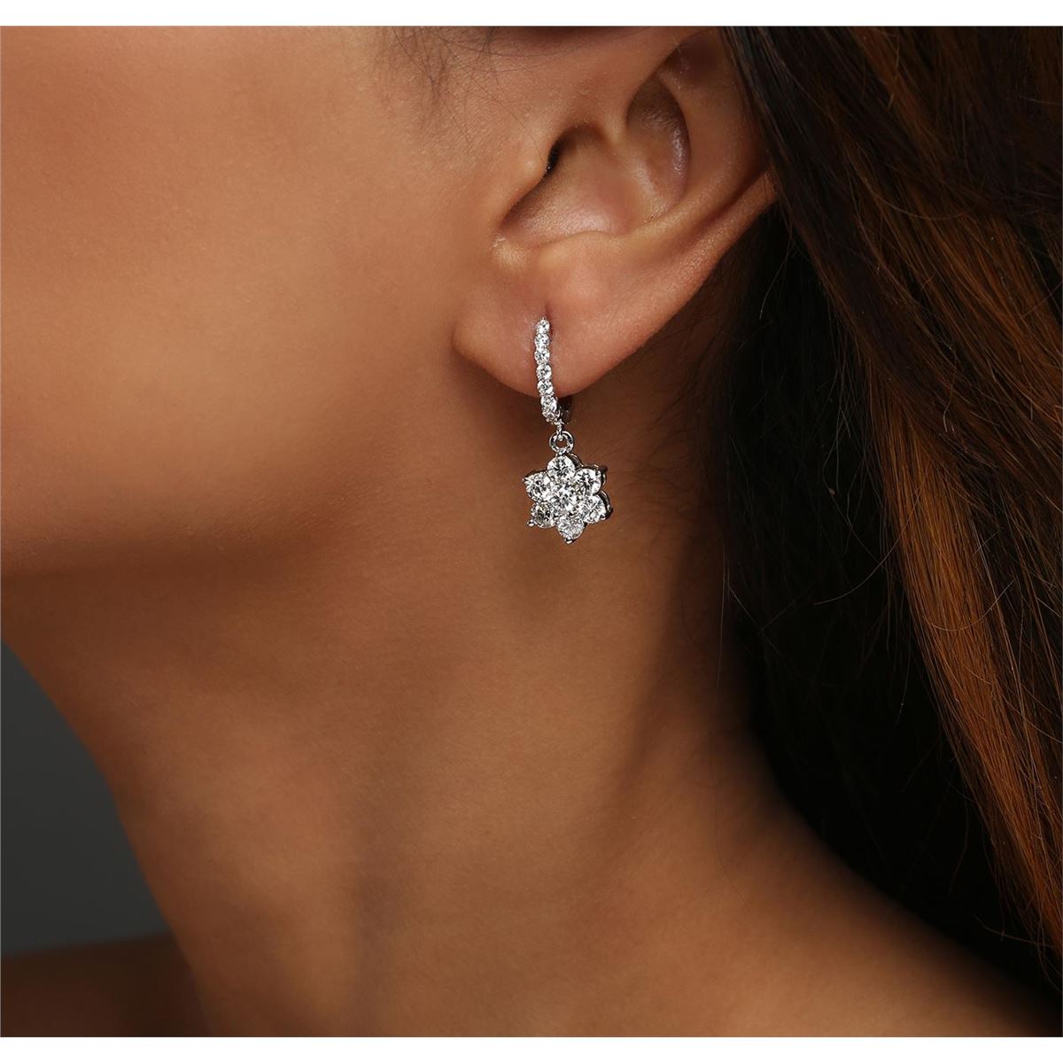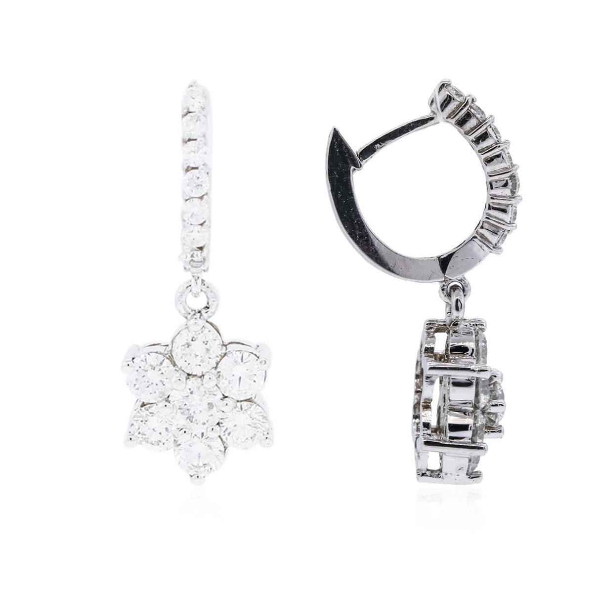 One pair electronically tested 14KT white gold ladies combination cast & assembled diamond earrings with hinged clip backs with a bright polish finish. Identified with markings of "14K". Condition is new. Containing: Fourteen prong set round brilliant cut diamonds, measuring 4.00 - 3.50 x 2.25mm (depth est.) approximate total weight of 14 Stones = 2.40ct. Clarity: SI-1 to SI-2. Color: I - J, Cut is Good. Twelve prong set round brilliant cut diamonds, measuring 1.80 - 1.80 x 1.08mm (depth est.) approximate total weight of 12 Stones = 0.26ct. Clarity: I-1. Color: H - I, Cut is Good. All diamonds are graded in the mounting, unless otherwise stated. Total Weight of Diamonds 2.66ct. Total Weight of Earrings 6.90 grams. GGL Appraised at $12,145.00.