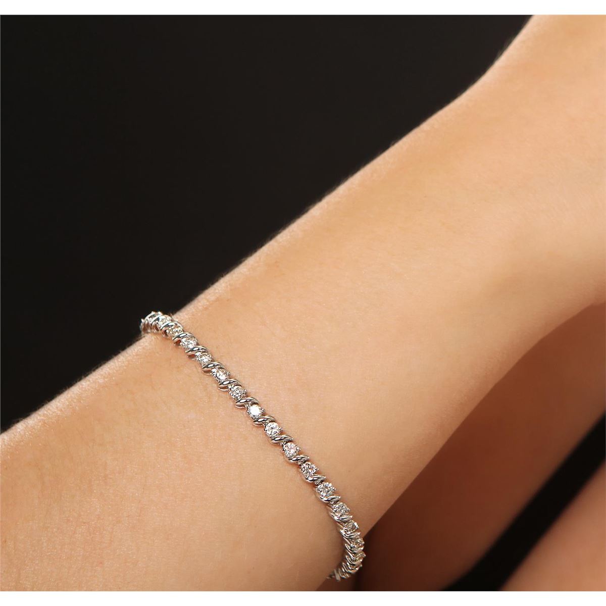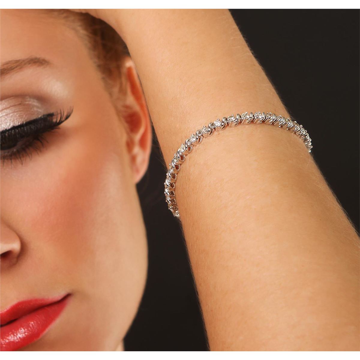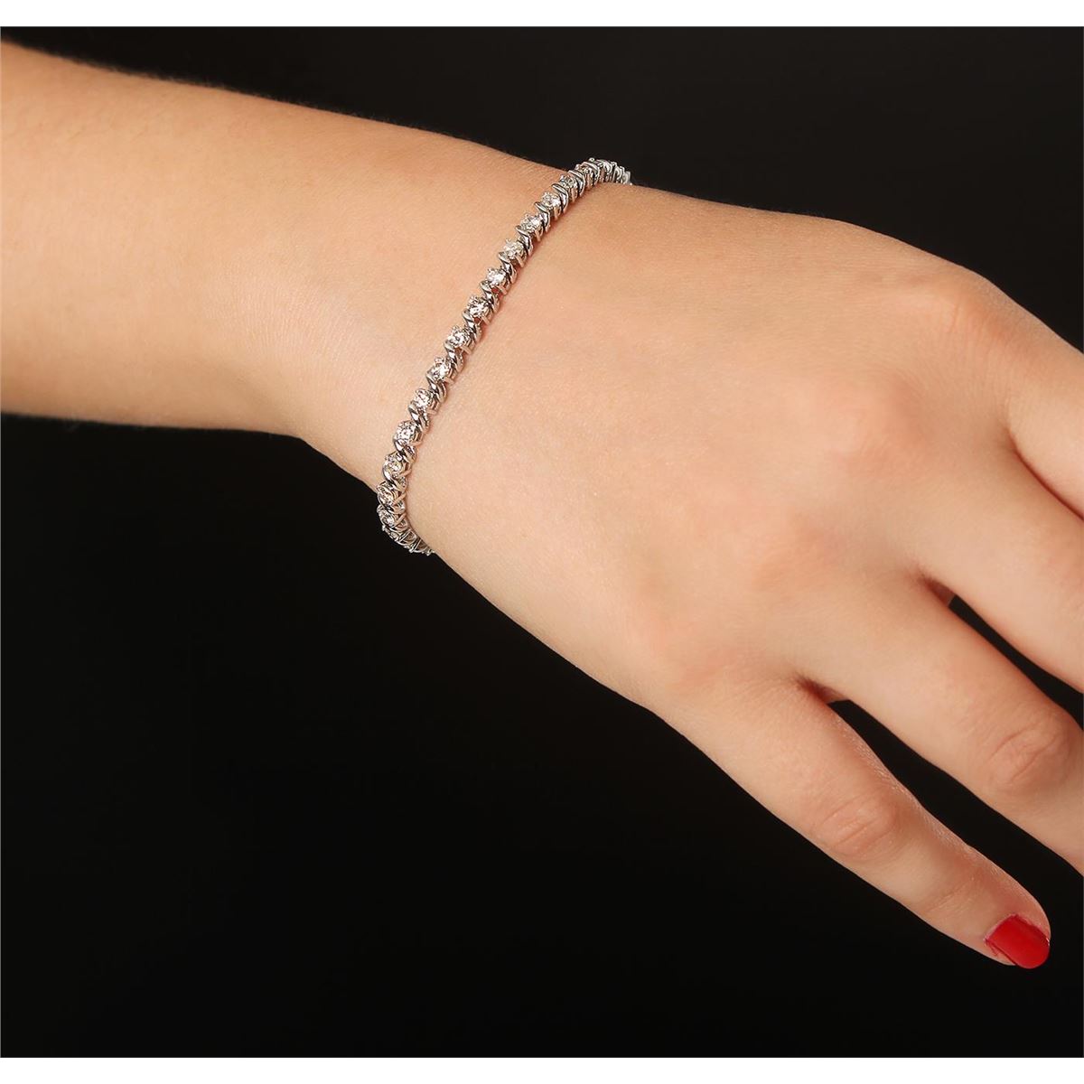 One electronically tested 14KT white gold ladies cast & assembled diamond tennis bracelet with a bright polish finish. Condition is good. The seven inch length bracelet features a continuous ribbon of diamonds interspersed by 14KT white gold bars, terminating in a concealed clasp with safety. Identified with markings of "14K". Tennis bracelet got their unusual name from an incident involving the U.S. professional tennis player Chris Evert during a tennis match in the 1980's. Evert had been wearing an expensive diamond bracelet, an inline string of individually-set diamonds. Previously these bracelets were known as eternity bracelets. When the clasp snapped during play, she asked the officials to stop the tennis match until the bracelet could be found. Since that day, bracelets featuring an inline string of diamonds have been called tennis bracelets. Containing: Thirty-six prong set round brilliant cut diamonds, measuring 2.75 - 2.70 x 1.64mm (depth est.) approximate total weight of 36 Stones = 2.67ct. The color grade reflects the entire range of color for this group. Faint brown secondary color throughout. Graded in the setting. Clarity SI-1 to I-1. Color J - M. Total Weight of Diamonds.2.67ct. Total Weight of Bracelet 10.76 gm. AIG Appraised at $8,725.00.