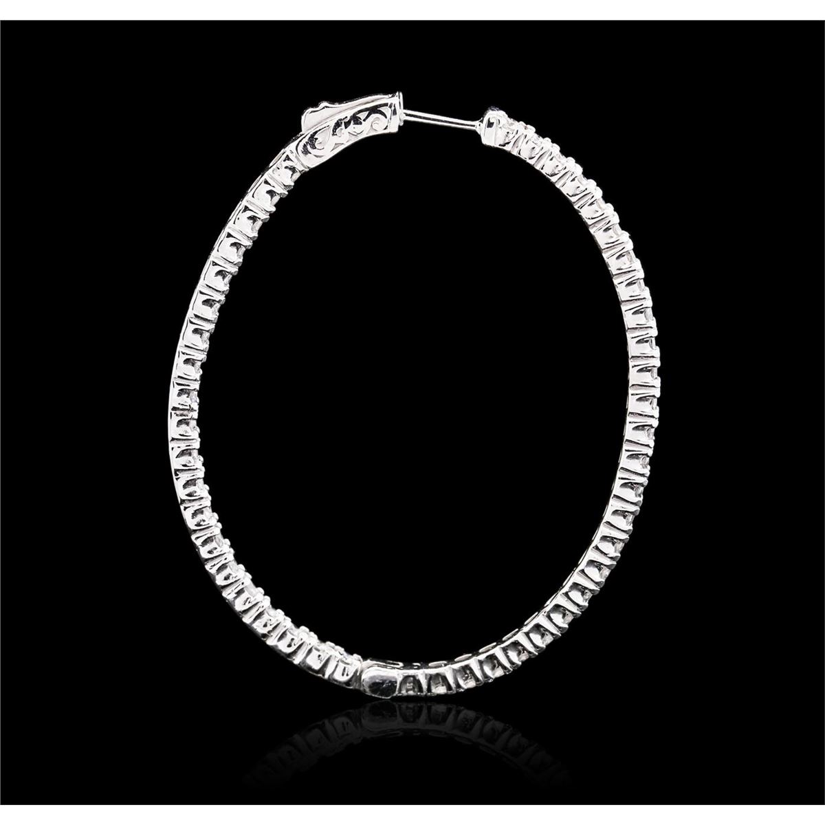 One pair electronically tested 14KT white gold ladies combination cast & assembled hoop earrings with hinged clip backs with a bright polish finish. Identified with markings of "14K". Condition is new. Containing: Ninety-Two prong set round brilliant cut diamonds, measuring 2.00 - 2.00 x 1.20mm (depth est.) approximate total weight of 92 Stones = 2.69ct. Clarity: I-1 to I-2. Color: I - J, Cut is Good. All diamonds are graded in the mounting, unless otherwise stated. Total Weight of Diamonds 2.69ct. Total Weight of Earrings 13.20 grams. GGL Appraised at $8,250.00.