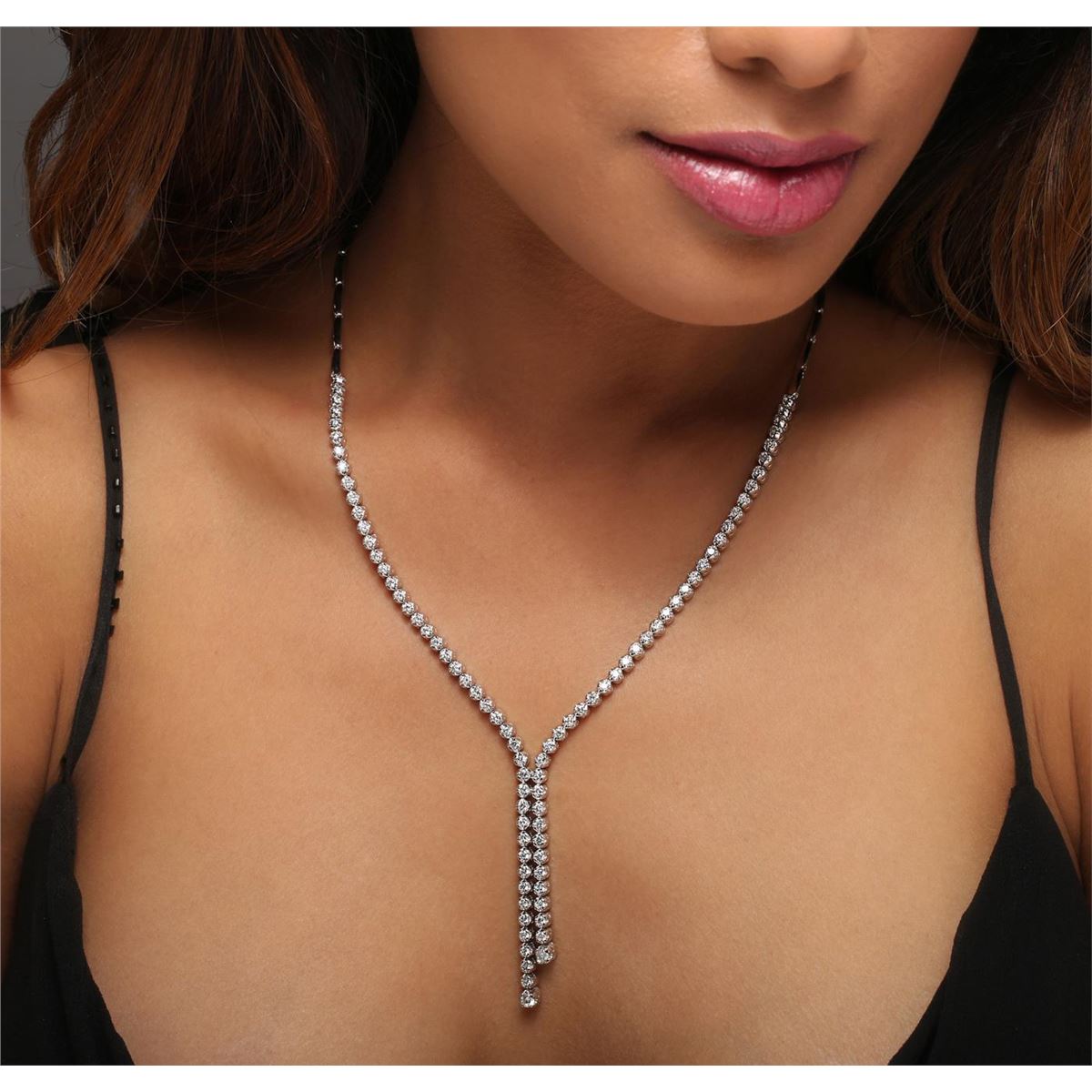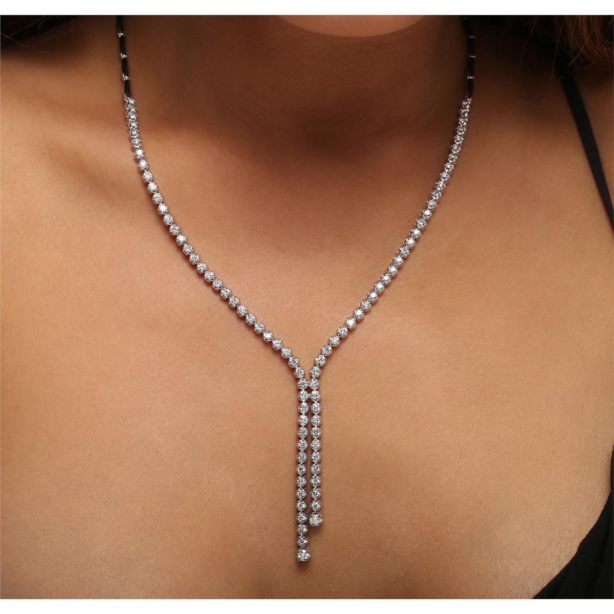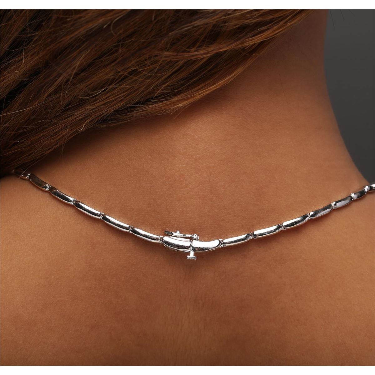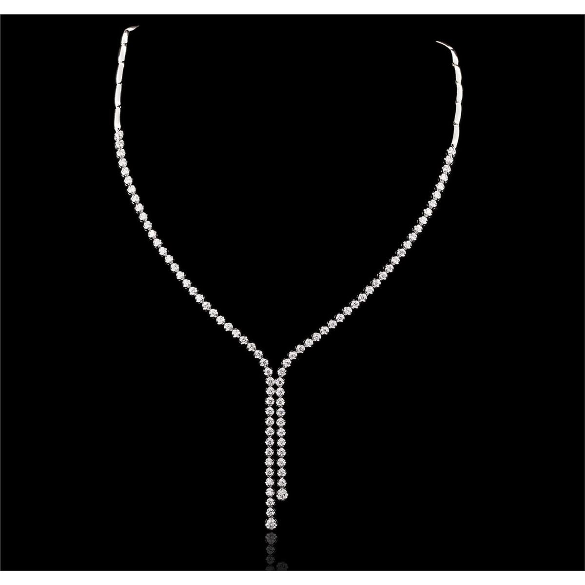One electronically tested 14KT white gold ladies combination cast & assembled diamond necklace with a hidden box clasp with safety closer with a bright polish finish. Measurements: 16.50 in length. Identified with markings of 14K. Condition is new. Containing: Eighty-Nine prong set round brilliant cut diamonds, measuring 3.20 - 2.00 x 1.56mm (depth est.) approximate total weight of 89 Stones = 2.70ct. Clarity: SI-2 to I-1. Color: H - J, Cut is Good. All diamonds are graded in the mounting, unless otherwise stated. Total Weight of Diamonds 2.70ct. Total Weight of Necklace 28.00 grams. GGL Appraised at $12,400.00.
