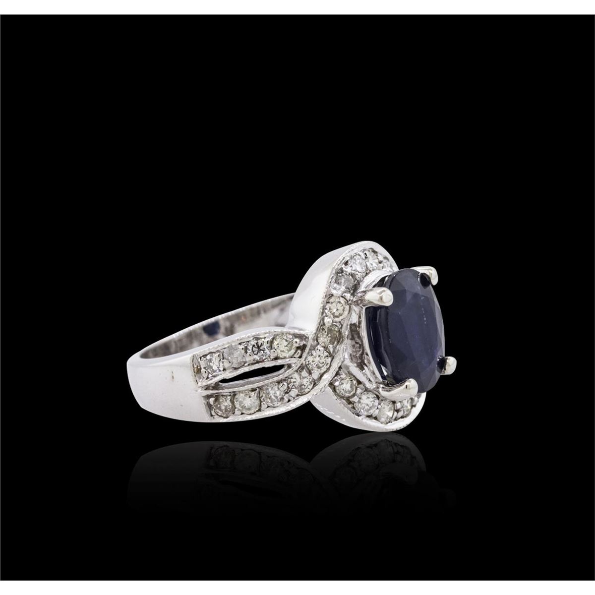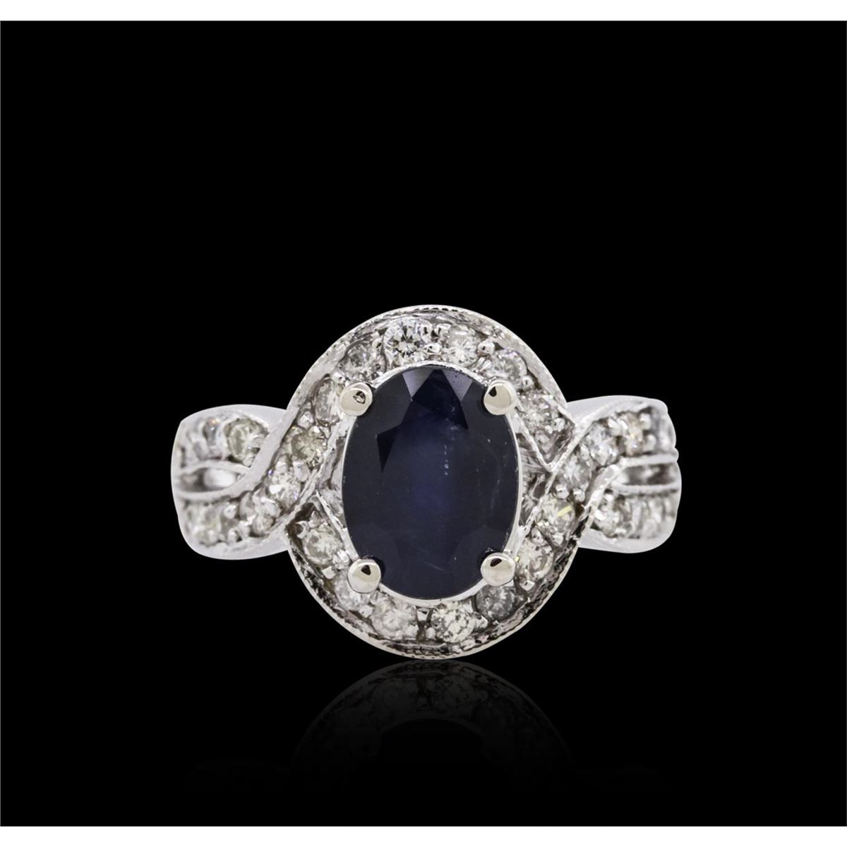 One ring featuring: 14KT white gold weighing 6.90 grams containing one prong set oval cut sapphire with a total weight of 2.70ct and pave set round cut diamonds with a total weight of 0.75cts.