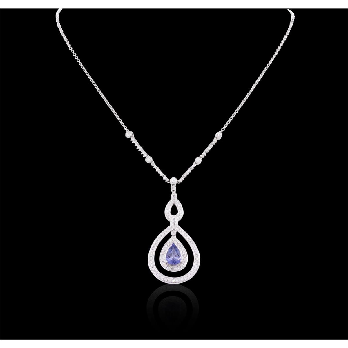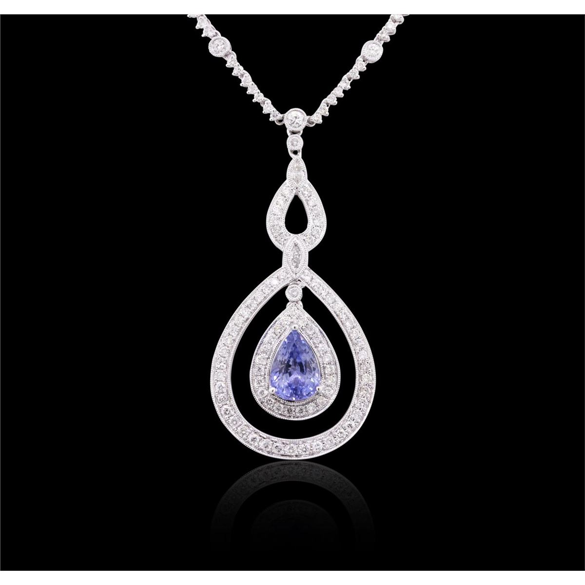 One necklace featuring: 14KT white gold weighing 9.88 grams containing one sapphire center stone with a total weight of 2.73ct and 113 round and marquise diamonds with a total weight of 1.40cts.