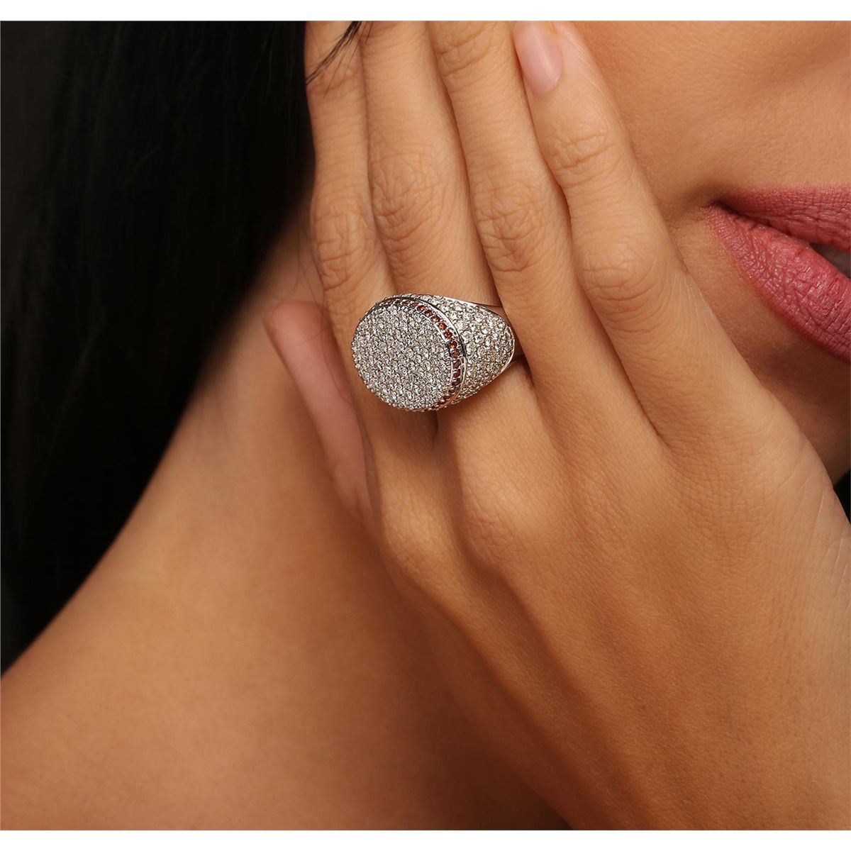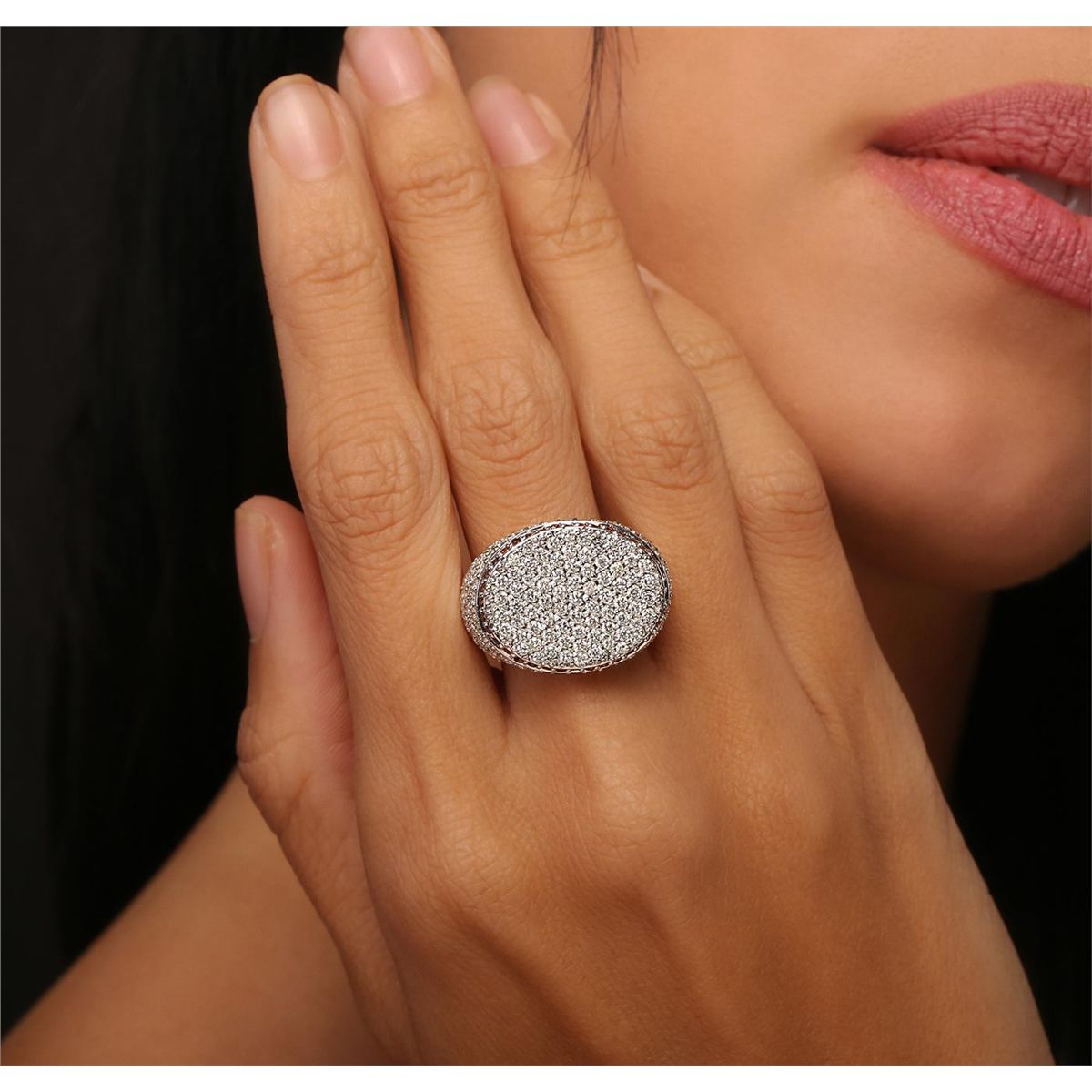 One electronically tested 14KT white gold ladies cast diamond ring with a bright polish finish. Condition is new, good workmanship. The ring features a white diamond set disc accented by a brown diamond ribbon supported by white diamond set shoulders, completed by a three millimeter wide band. Trademark is Sonia B. Identified with markings of "585". Containing: One Hundred Sixty-Seven prong set round brilliant cut diamonds, measuring 1.70 - 1.40 x 0.93mm (depth est.) approximate. Total Weight of 167 Stones = 2.37ct. Graded in the setting. Clarity: VS-1 to SI-1. Color: G - I Thirty-Seven prong set round brilliant cut diamonds, measuring 1.40 - 1.30 x 0.81mm (depth est.) approximate. Total Weight of 37 Stones = 0.43ct. Color grade is an average for the group. Graded in the setting. Clarity: SI-1 to SI-2. Total Weight of Diamonds 2.80ct. Total Weight of Ring 10.39 grams. AIG Appraised at $11,740.00.