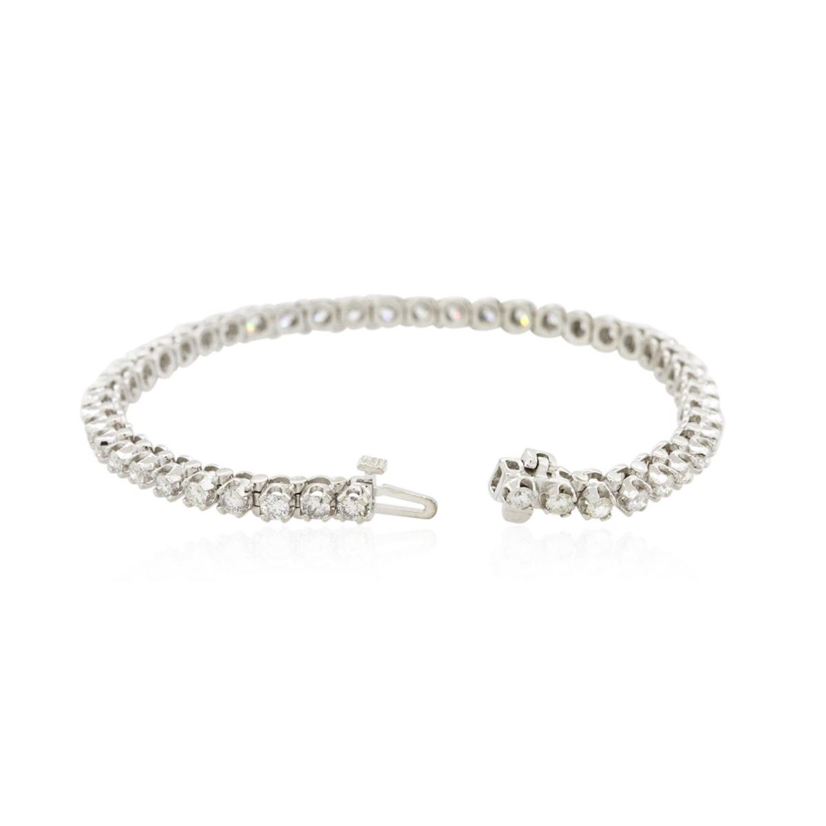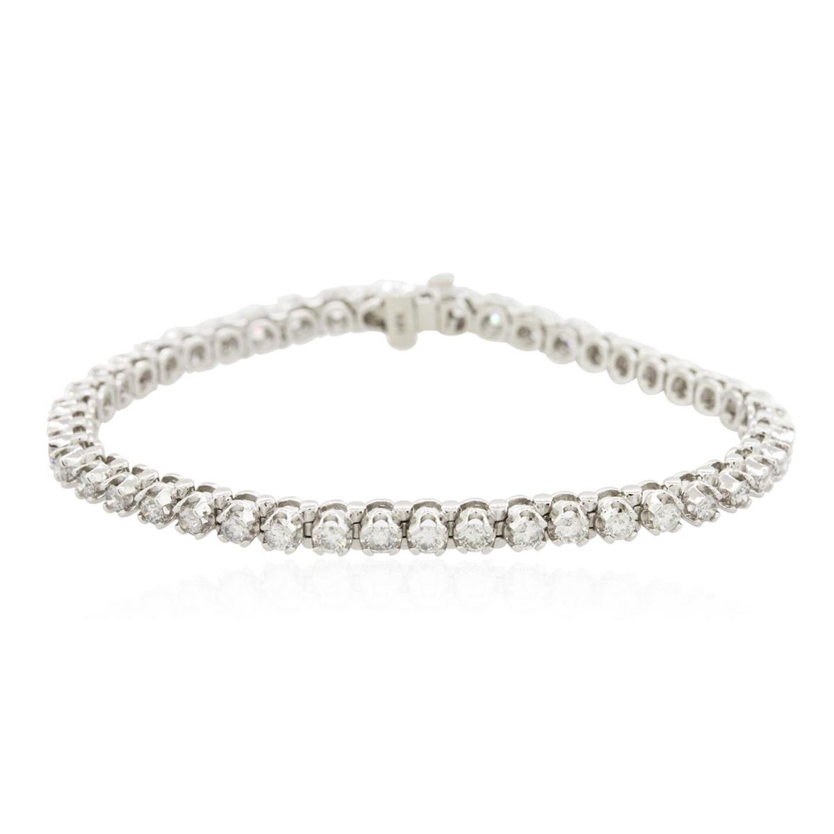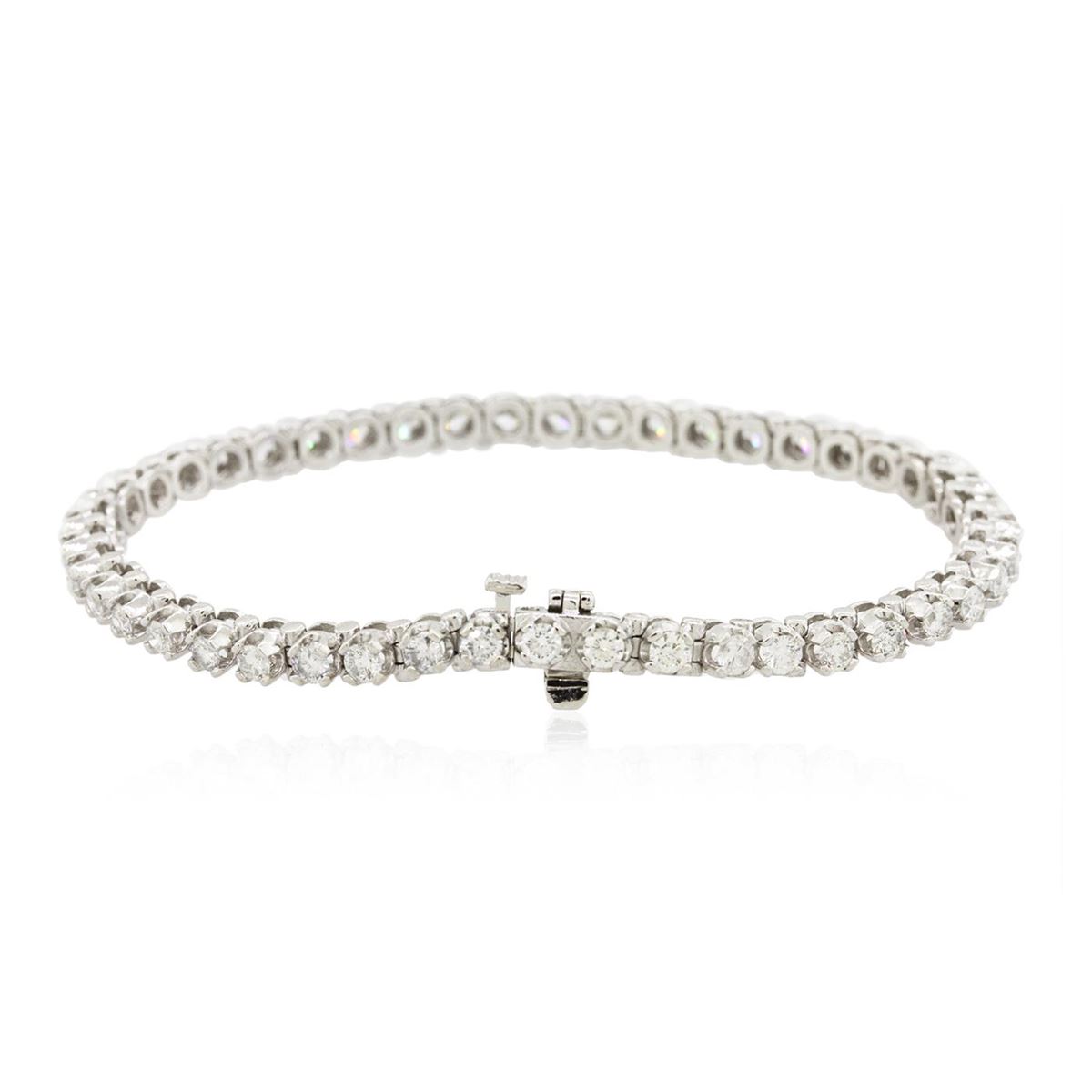 One electronically tested 14KT white gold ladies combination cast & assembled tennis bracelet with a hidden box clasp with a bright polish finish. Condition is new. Measurements: 7" in length. Identified with markings of "14K". Containing: Forty-Five prong set round brilliant cut diamonds, measuring 2.60 - 2.60 x 1.56mm (depth est.) approximate. Total Weight of 45 Stones = 2.89ct. Clarity: SI-2 to I-1. Color: G - H, Cut is Good. All diamonds are graded in the mounting, unless otherwise stated. Total Weight of Diamonds 2.89ct. Total Weight of Bracelet 13.80 grams. GGL Appraised at $13,240.00.