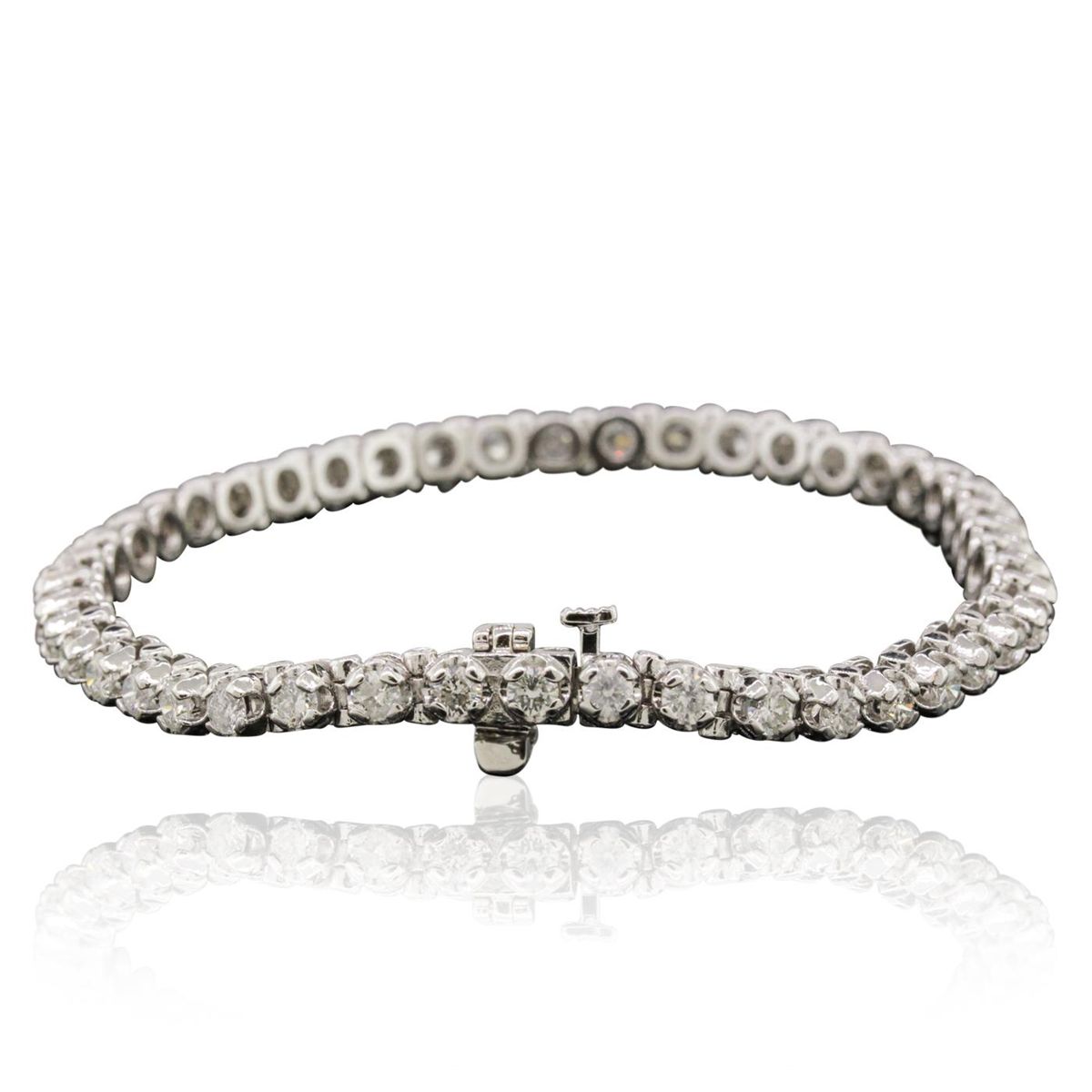 One electronically tested 14KT white gold ladies combination cast & assembled tennis bracelet with a hidden box clasp with a bright polish finish. Condition is new. Measurements: 7" in length. Identified with markings of "14K". Containing: Forty-Five prong set round brilliant cut diamonds, measuring 2.60 - 2.60 x 1.56mm (depth est.) approximate total weight of 45 Stones = 2.89ct. Clarity: SI-2 to I-2. Color: I - J, Cut is Good. All diamonds are graded in the mounting, unless otherwise stated. Total Weight of Diamonds 2.89ct. Total Weight of Bracelet 13.20 grams. GGL Appraised at $14,260.00.