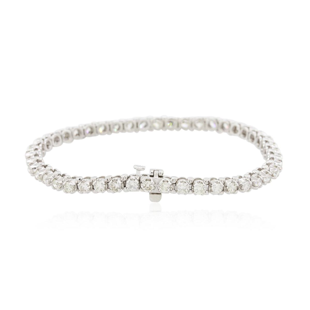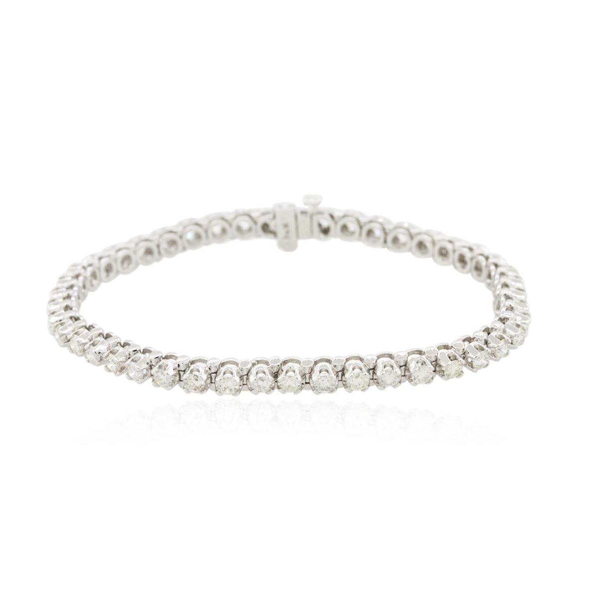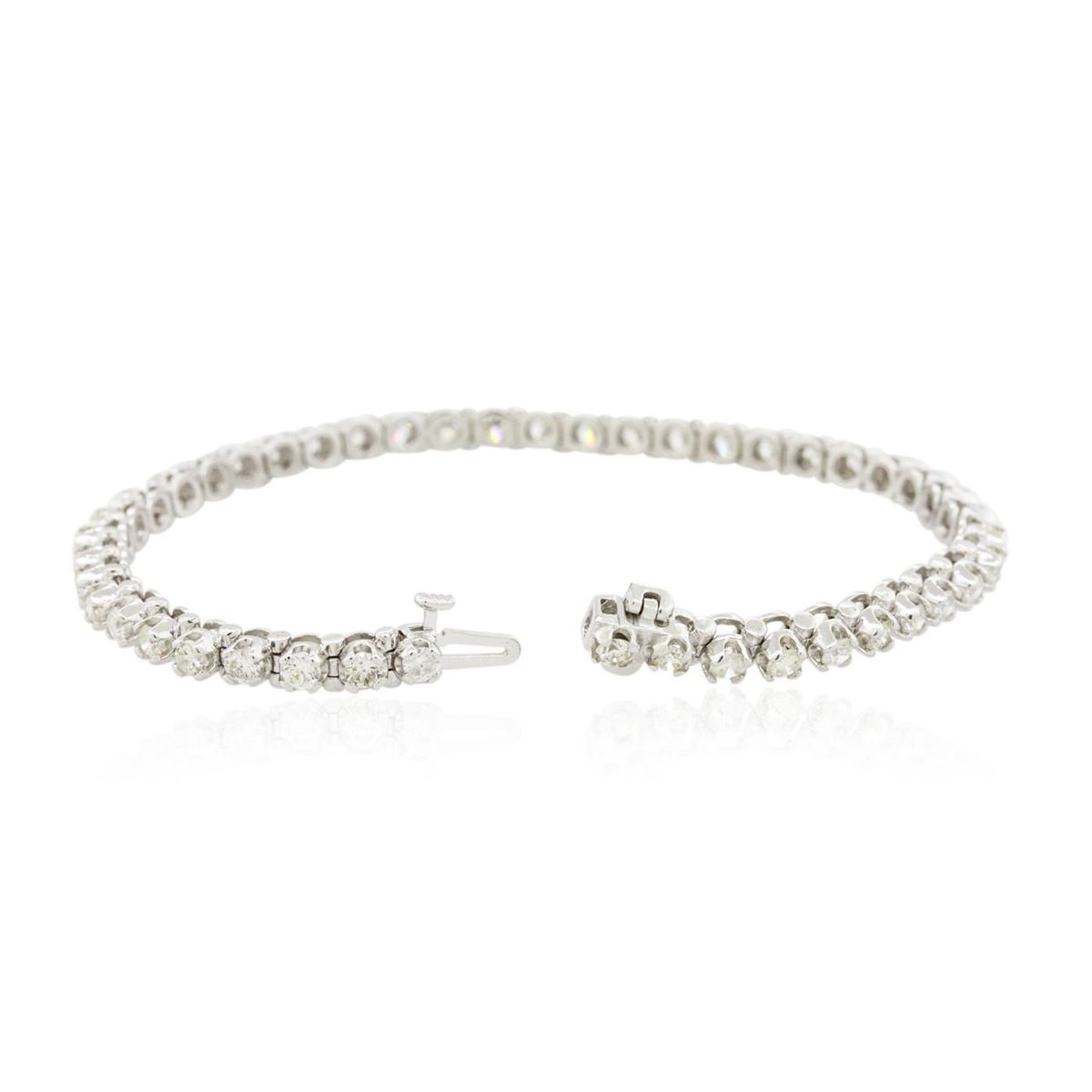 One electronically tested 14KT white gold ladies combination cast & assembled tennis bracelet with a hidden box clasp with a bright polish finish. Condition is new. Measurements: 7" in length. Identified with markings of "14K". Containing: Forty-Five prong set round brilliant cut diamonds, measuring 2.60 - 2.60 x 1.56mm (depth est.) approximate. Total Weight of 45 Stones = 2.89ct. Clarity: SI-2 to I-2. Color: F - H, Cut is Good. All diamonds are graded in the mounting, unless otherwise stated. Total Weight of Diamonds 2.89ct. Total Weight of Bracelet 13.90 grams. GGL Appraised at $12,170.00.