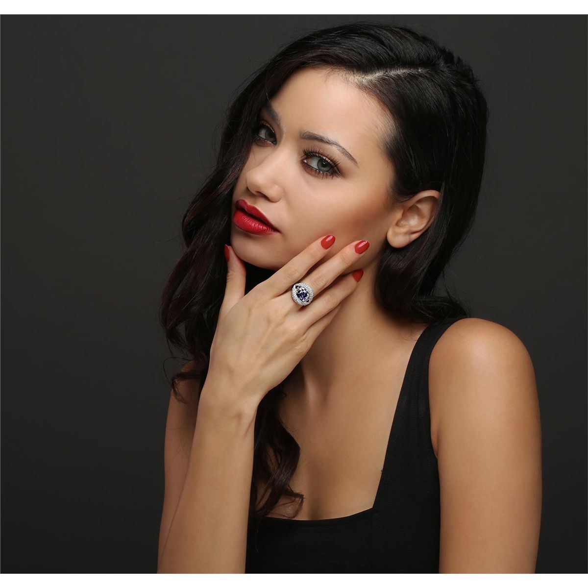 One electronically tested 14KT white gold ladies cast tanzanite and diamond ring with a bright polish finish. The featured tanzanite is set within an elaborate diamond set curvature supported by diamond set shoulders, completed by a two and one-half millimeter wide band. Trademark is Orianne. Identified with markings of "14K". Condition is new, good workmanship. Containing: One prong set triangle brilliant cut natural tanzanite, measuring 9.00 x 8.90 x 5.75mm, 6% bulge factor, approximate weight of 2.94ct., clarity is eye clean, type I, medium dark, very slightly grayish, bluish violet color, (GIA bV 6/3), cut is good. Transmitting light with no distortion, transparent. Graded in the setting. Tanzanite is a very rare gemstone that is only found in the country of Tanzania. Originally discovered in 1967. Tiffany & Company, named the stone Tanzanite. It is found in the Usumburu Mountains that border the Umba Valley of northern Tanzania. Tanzanite occurs in gray, brown, violet, blue, reddish-purple, & green. The gem is interesting because of its exceptional pleochroism. Rotated in different directions a tanzanite will exhibit multiple changes of color. Tanzanite has a low tolerance to ultrasonic cleaning, and should not be cleaned using this method. Eighty-Three prong set round brilliant cut diamonds, measuring 1.50 - 1.30 x 0.84mm (depth est.) approximate total weight of 83 Stones = 0.93ct. Graded in the setting. Clarity: I-2 to I-3. Color: H - J Thirty-Eight channel set baguette cut diamonds, measuring from 2.00 x 1.10 x 0.77mm (depth est.) to 2.10 x 1.20 x 0.84mm (depth est.) approximate total weight of 38 Stones = 0.65ct. Graded in the setting. Clarity: SI-2 to I-1. Color: G - I. Total Weight of Colored Stones 2.94ct. Total Weight of Diamonds 1.58ct. Total Weight of Ring 7.54 grams. AIG Appraised at $11,310.00.