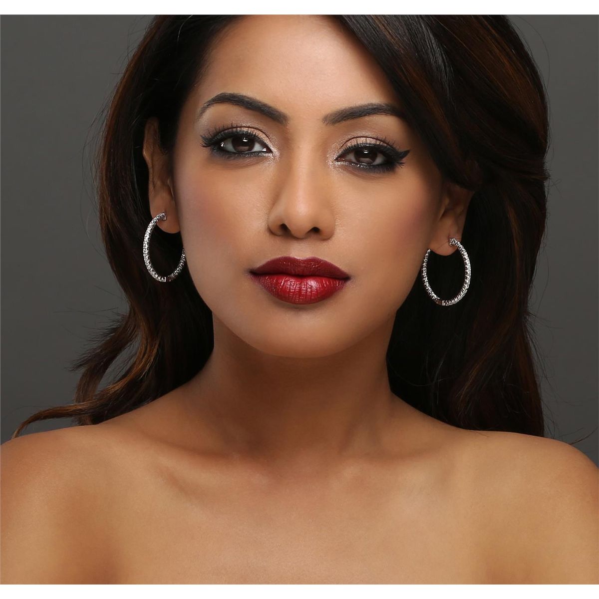 One pair electronically tested 14KT white gold ladies combination cast & assembled diamond hoop earrings with hinged clip backs with a bright polish finish. Identified with markings of "14K". Condition is new. Containing: Sixty-Six prong set round brilliant cut diamonds, measuring 2.30 - 2.30 x 1.38mm (depth est.) approximate total weight of 66 Stones = 2.94ct. Clarity: SI-2 to I-2. Color: H - I, Cut is Good. All diamonds are graded in the mounting, unless otherwise stated. Total Weight of Diamonds 2.94ct. Total Weight of Earrings 10.70 grams. GGL Appraised at $10,370.00.