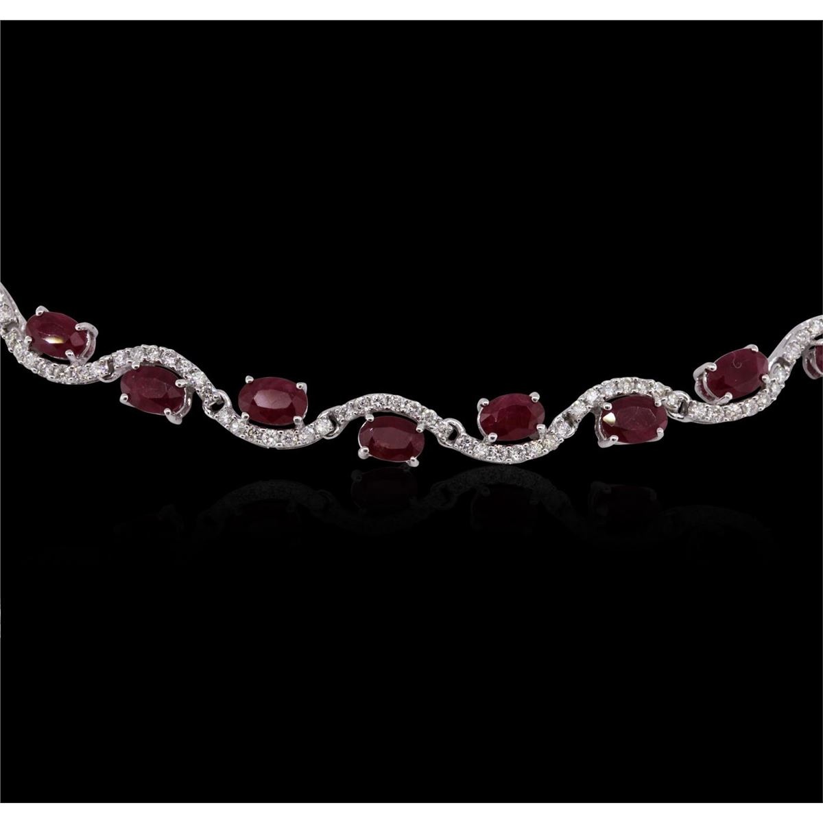 One necklace featuring: 14KT white gold weighing 25.85 grams containing 40 rubies with a total weight of 23.04cts and round cut diamonds with a total weight of 3.85cts.