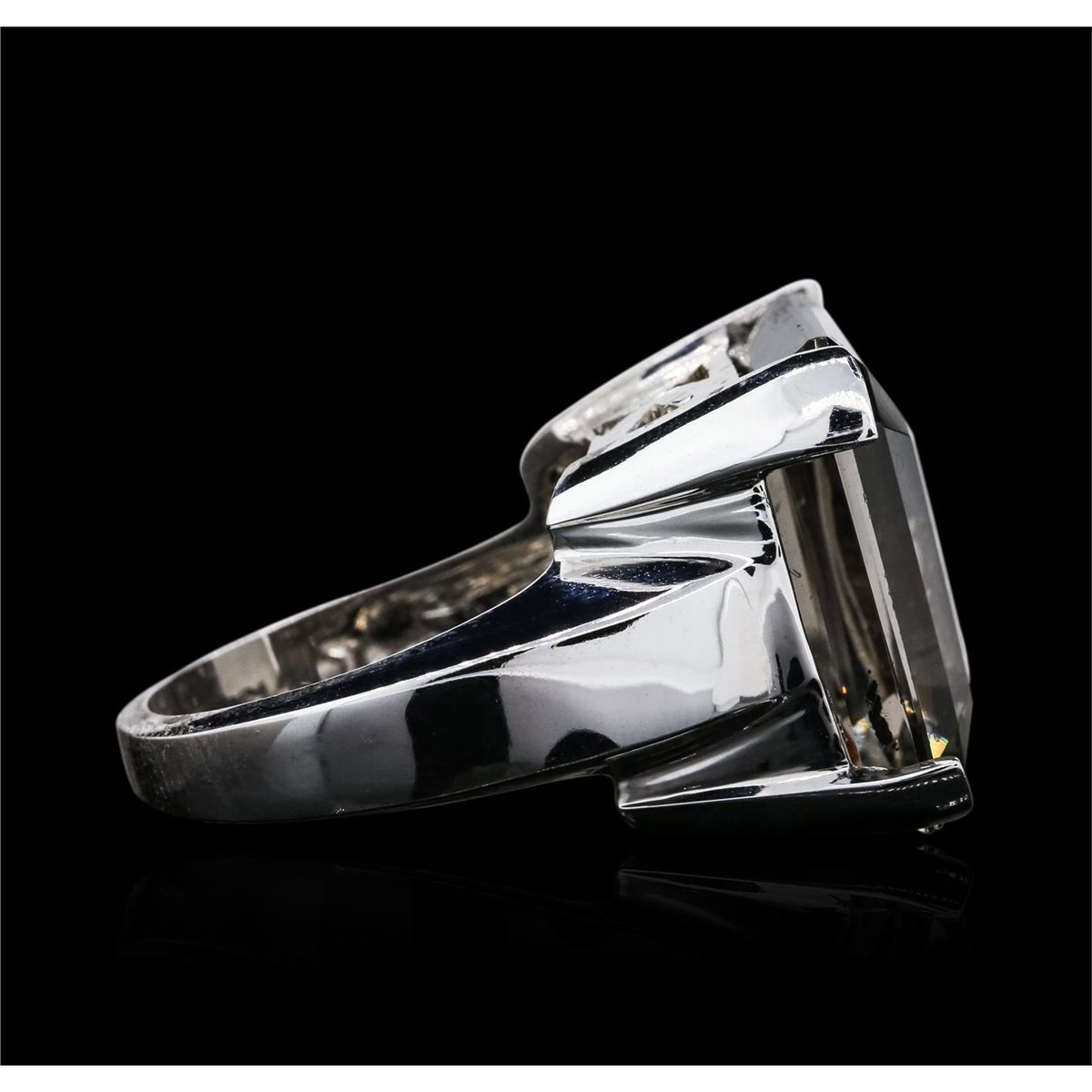 One electronically tested 14KT white gold ladies combination cast & assembled tourmaline ring with a bright polish finish. Identified with markings of "14K". Condition is new. Containing: One prong set emerald standard step cut natural green tourmaline, measuring 18.64 x 15.97 x 10.27mm, approximate weight of 25.26ct., clarity is eye clean, type I, light, very slightly grayish, bluish green color, (GIA bG 3/3), cut is good. Colored gemstones are presumed to have been subjected to commonly used enhancement processes. All colored gemstones are graded in the mounting, unless otherwise stated. Total Weight of Colored Stones 25.26ct. Total Weight of Ring 16.10 grams. GGL Appraised at $12,185.00.