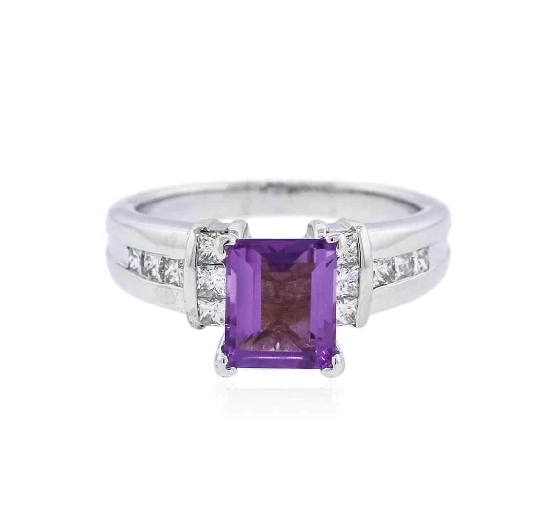 One ring featuring: 14KT white gold weighing 9.00 grams containing one amethyst center stone with a total weight of 3.00ct and diamonds with a total weight of 0.60ct.