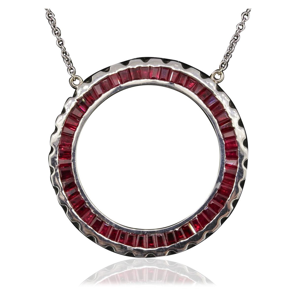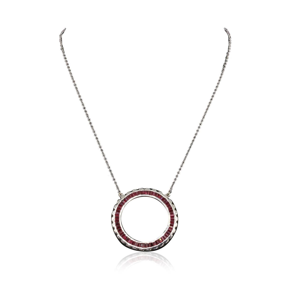 One necklace featuring: 14KT white gold with a total weight of 14.10 grams, and ruby with a total weight of 3.00ctw.
