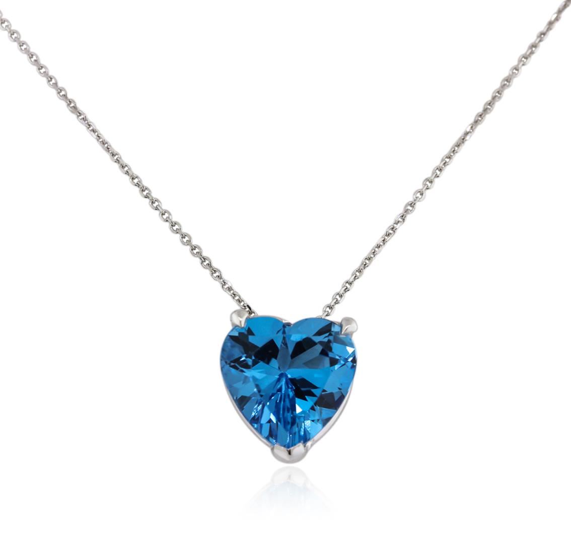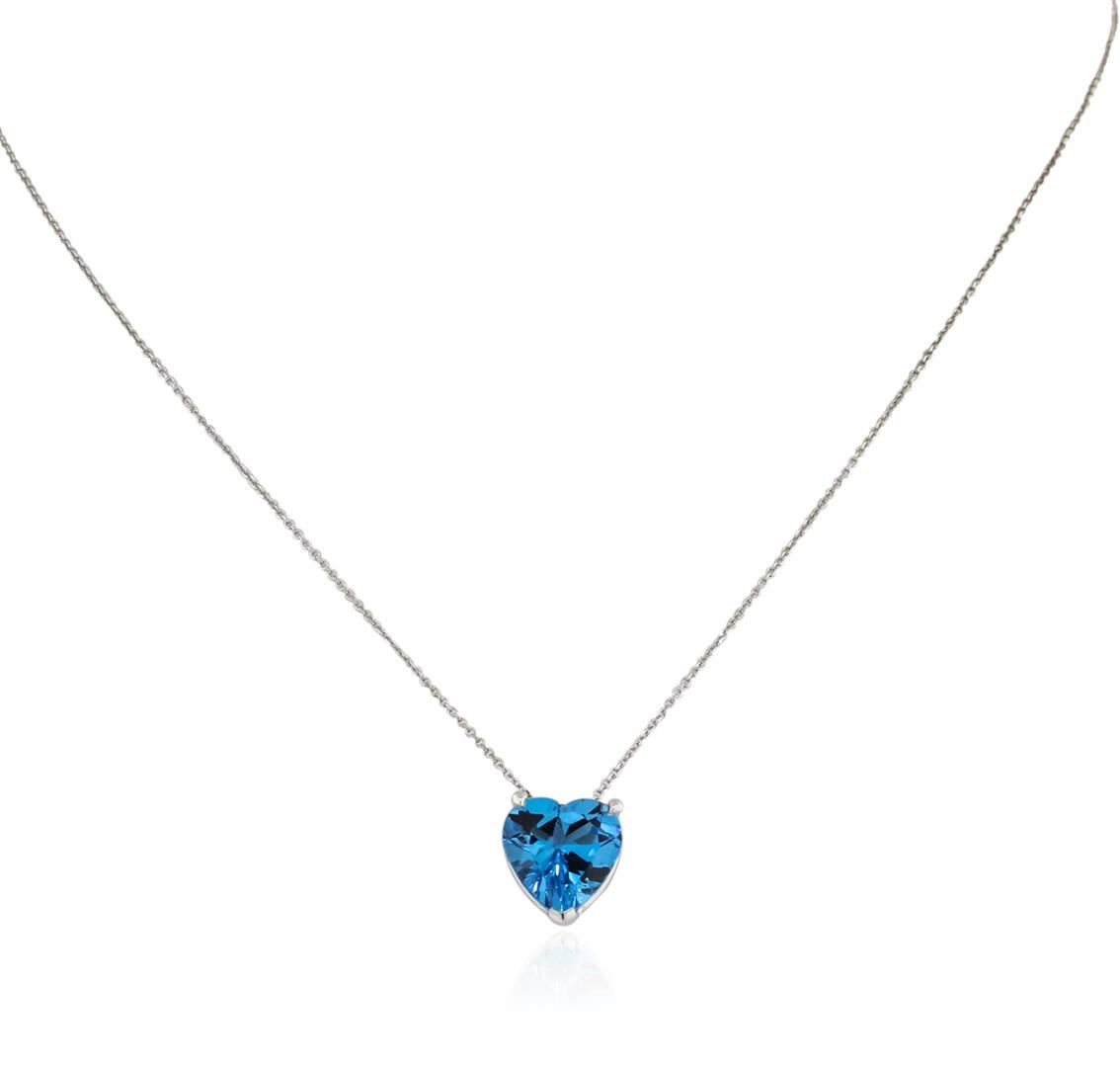 One heart necklace featuring: 14KT white gold weighing 3.55 grams containing one blue topaz with a total weight of 3.00ct.
