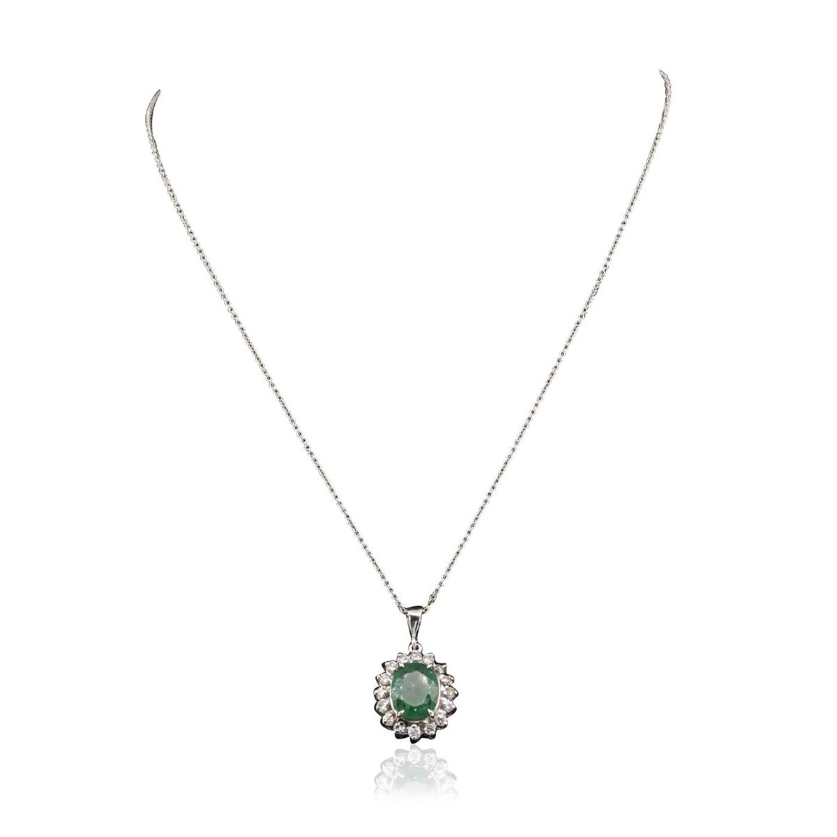 One Pendant With Chain featuring: 14KT White Gold with a total weight of 3.10 grams, Emerald with a total weight of 3.00ct, and Diamonds with a total weight of 0.50ctw.