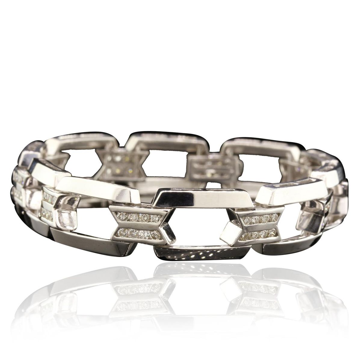 One bracelet featuring: 37.40 grams of 14KT white gold and 3.00ctw of diamonds.