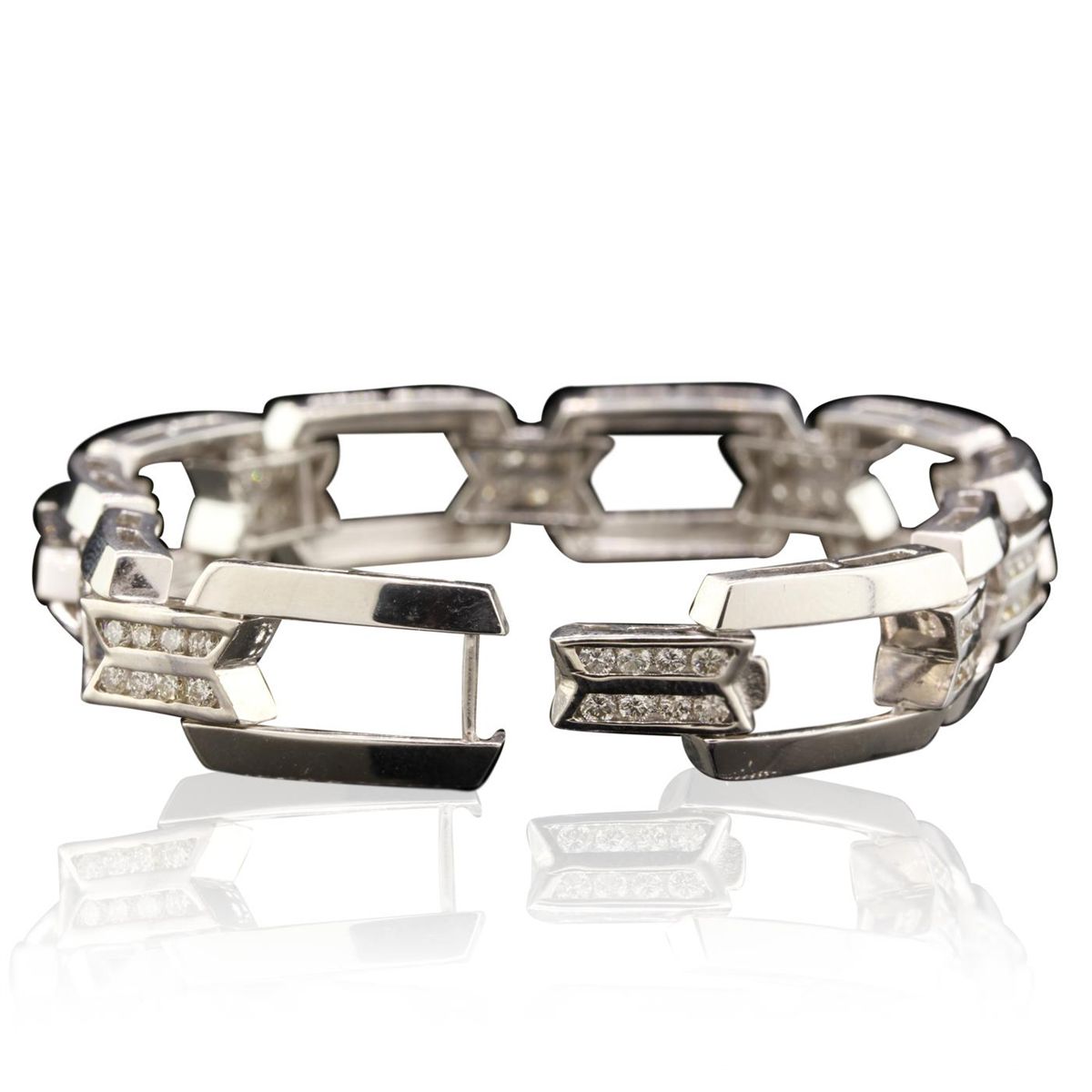 One bracelet featuring: 37.40 grams of 14KT white gold and 3.00ctw of diamonds.