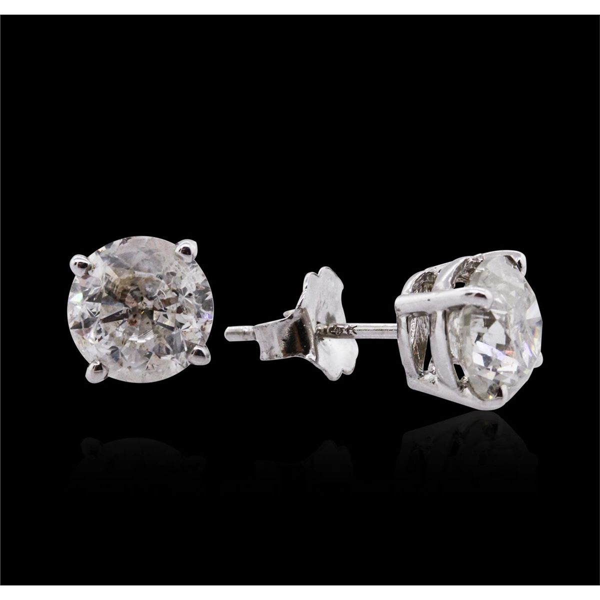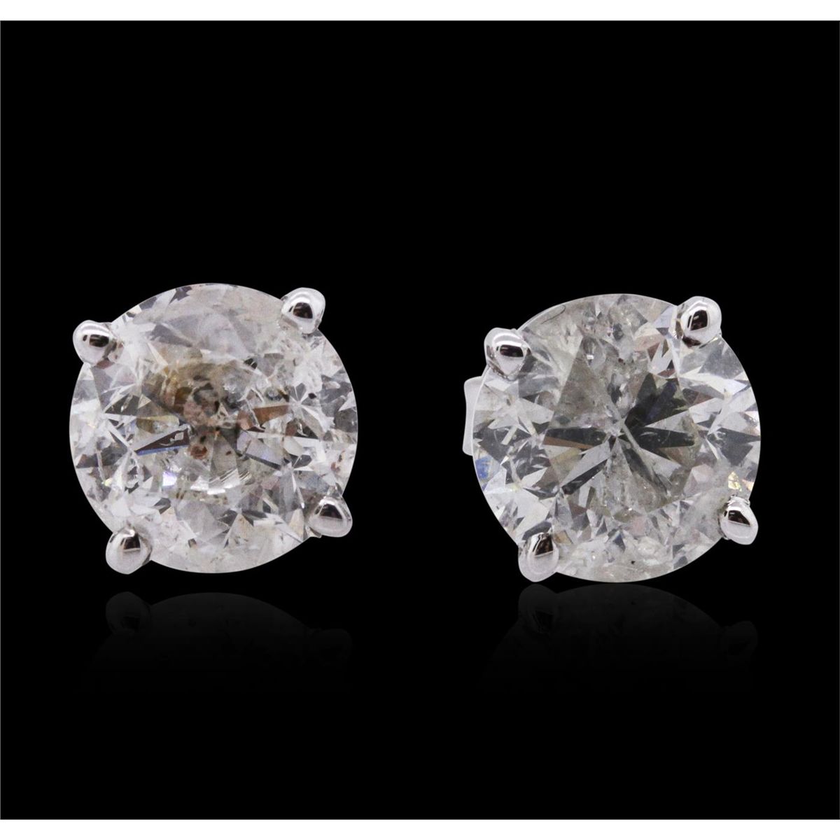 One pair of stud earrings featuring: 14KT white gold weighing 1.00 grams containing 2 round cut diamonds with a total weight of 3.00cts.