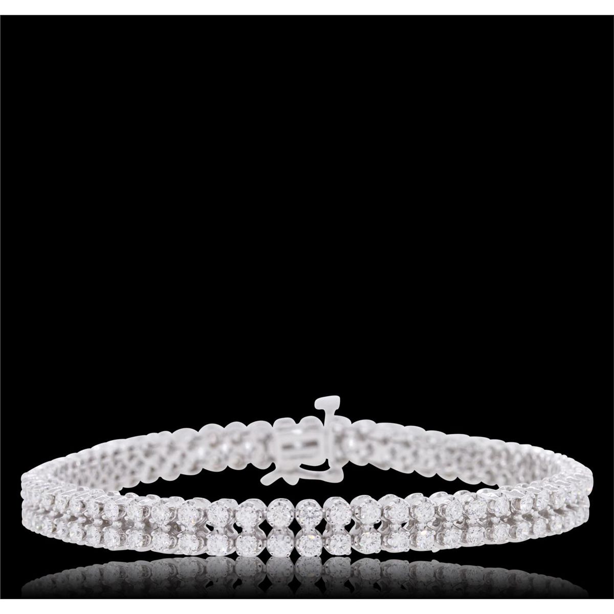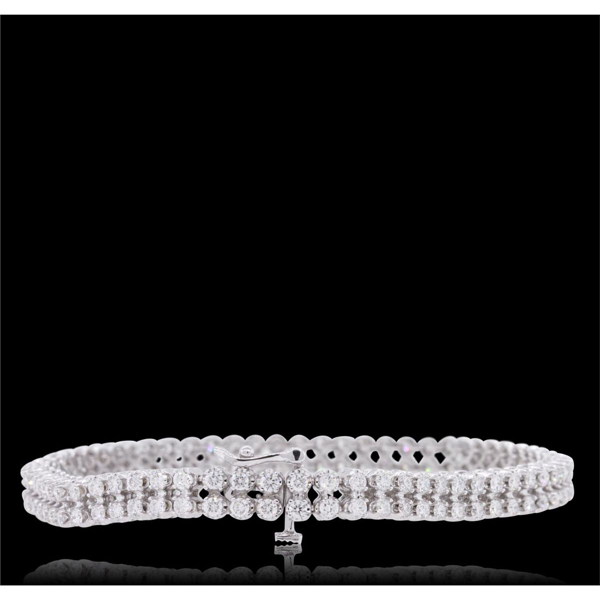 One electronically tested 14KT white gold ladies cast & assembled diamond bracelet with a bright polish finish. Seven inch length bracelet features two flexible diamond ribbons, terminating in a concealed clasp with safety. Identified with markings of 14K. Condition is new, good workmanship. Containing: One Hundred Thirty prong set round brilliant cut diamonds, measuring 1.90 - 1.80 x 1.11mm (depth est.) approximate total weight of 130 Stones = 3.10ct. Graded in the setting. Clarity: SI-1 to I-1. Color: G - I. Total Weight of Diamonds 3.10ct. Total Weight of Bracelet 16.50 grams. AIG Appraised at $11,725.00.
