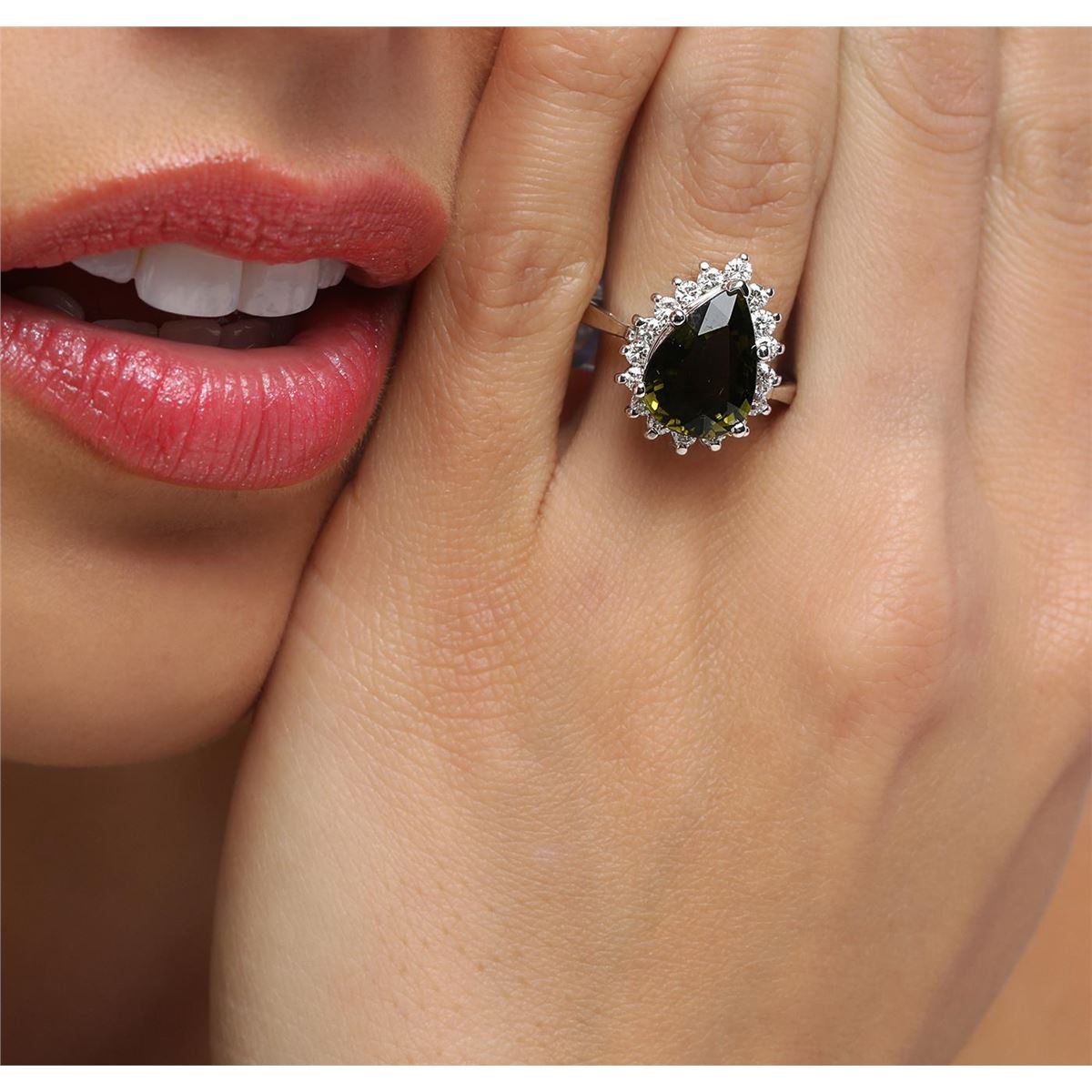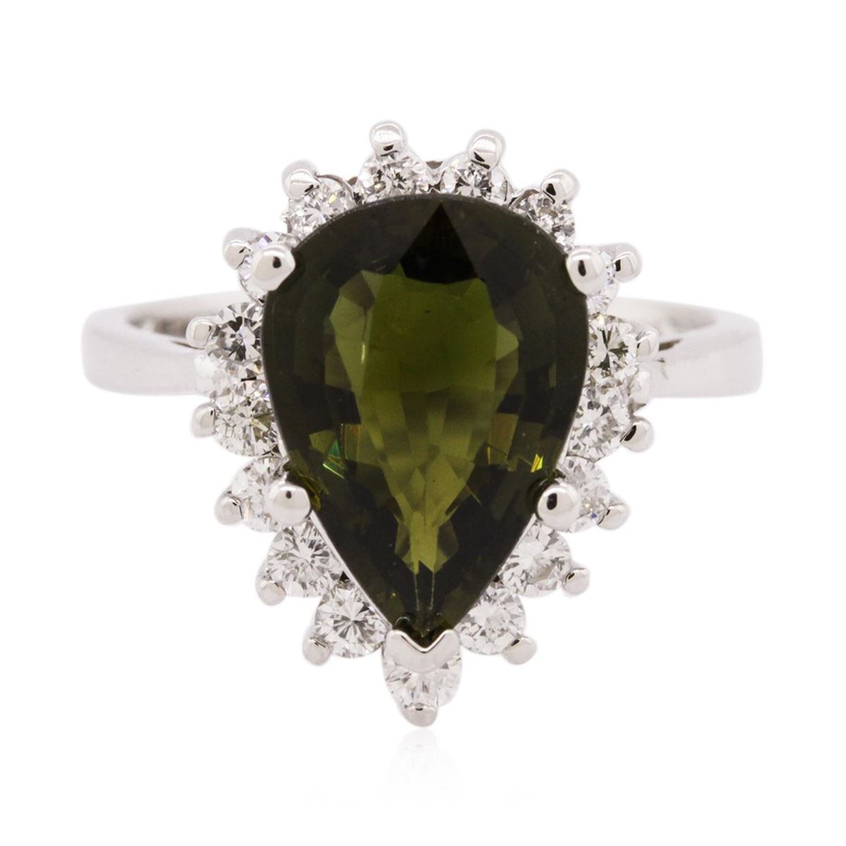 One ring featuring: 14KT white gold weighing 6.42 grams containing one green tourmaline center stone with a total weight of 3.23ct and round diamonds with a total weight of 0.60cts.