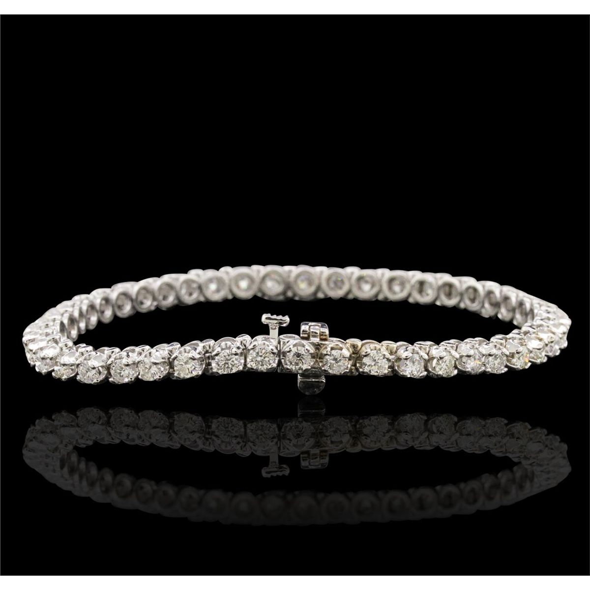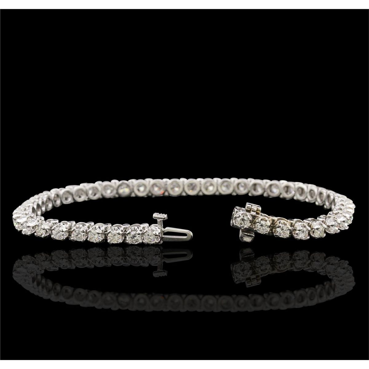 One electronically tested 14KT white gold ladies combination cast & assembled tennis bracelet with a hidden box clasp with a bright polish finish. Condition is new. Measurements: 7" in length. Identified with markings of "14K". Containing: Forty-Five prong set round brilliant cut diamonds, measuring 2.70 - 2.70 x 1.62mm (depth est.) approximate. Total Weight of 45 Stones = 3.24ct. Clarity: SI-2 to I-2. Color: I - J, Cut is Good. All diamonds are graded in the mounting, unless otherwise stated. Total Weight of Diamonds 3.24ct. Total Weight of Bracelet 13.80 grams. GGL Appraised at $11,300.00.
