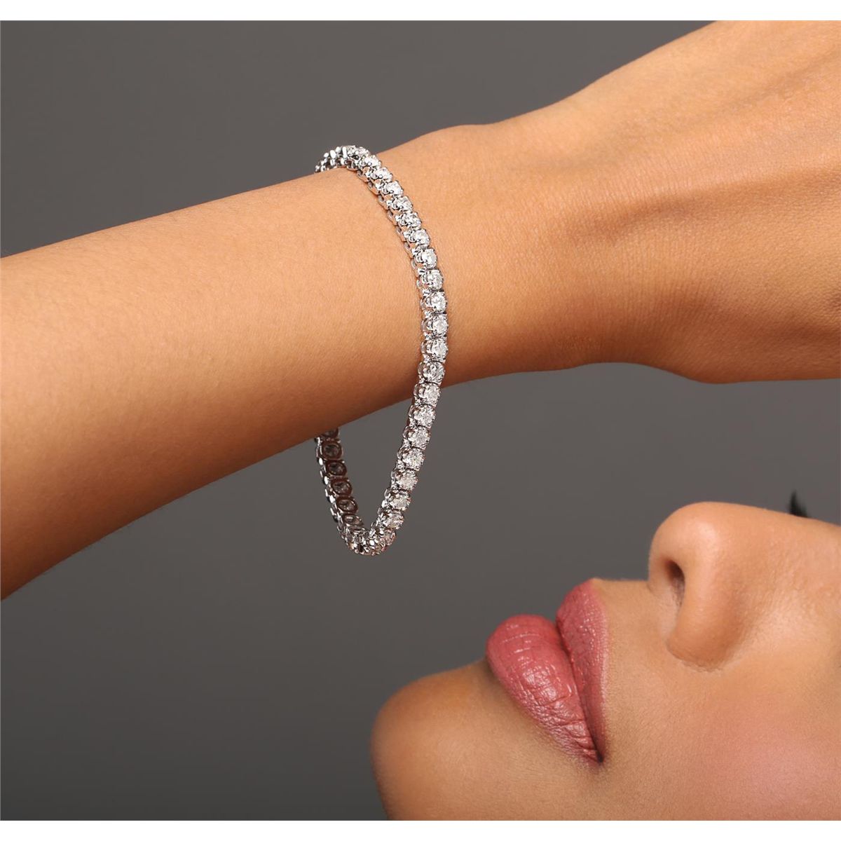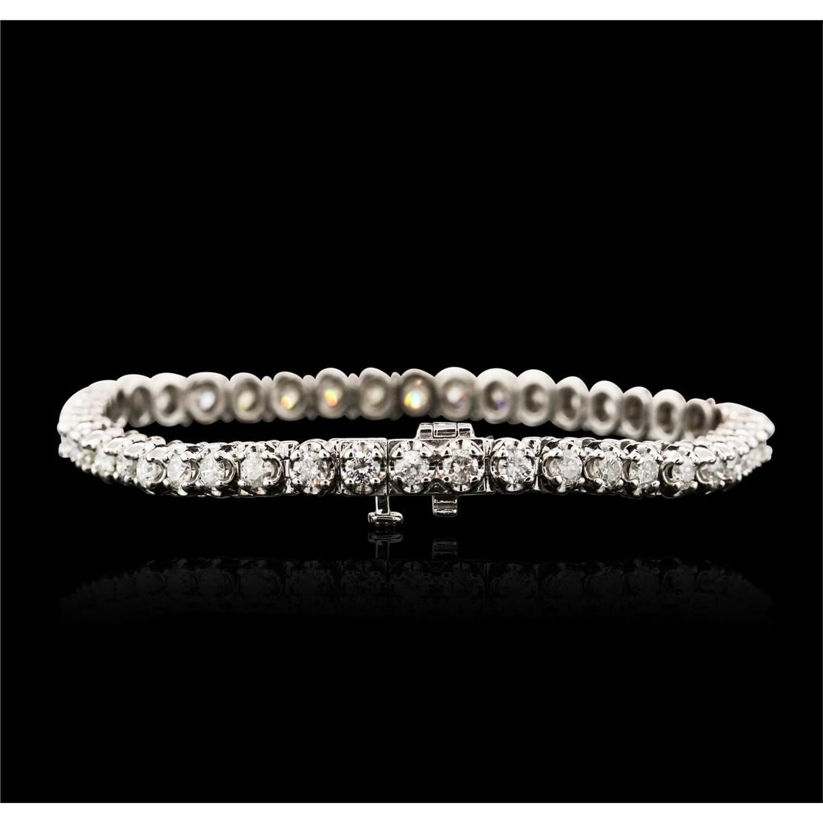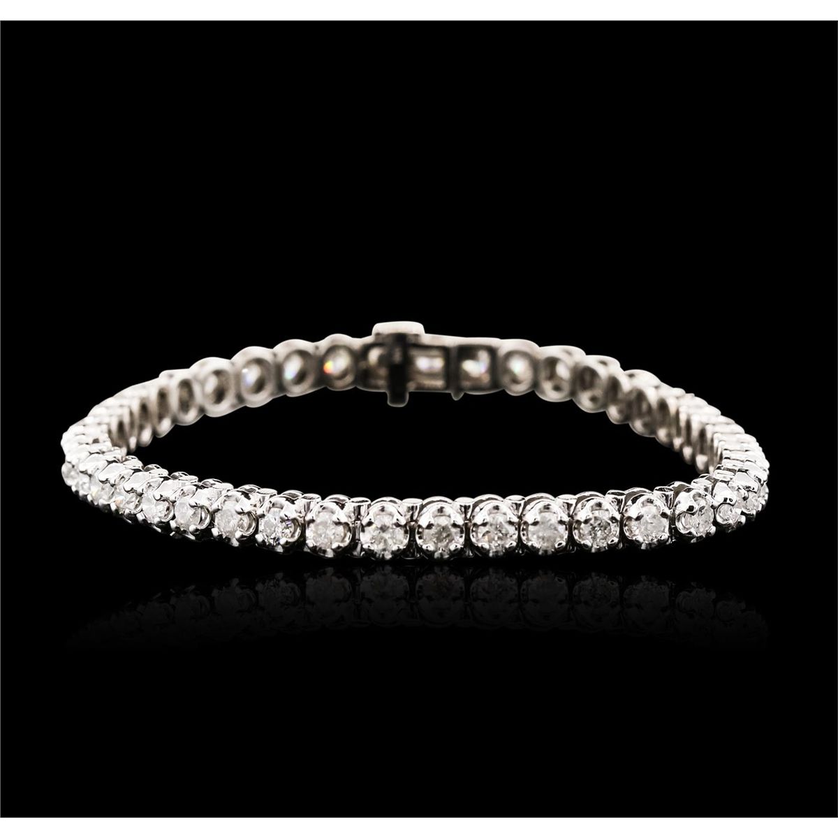 One electronically tested 14KT white gold ladies combination cast & assembled diamond tennis bracelet with a hidden box clasp with safety closer with a bright polish finish. Measurements: 7 in length. Identified with markings of 14K. Condition is new. Containing: Forty-Five prong set round brilliant cut diamonds, measuring 2.70 - 2.70 x 1.62mm (depth est.) approximate total weight of 45 Stones = 3.24ct. Clarity: I-1 to I-2. Color: I - J, Cut is Good. All diamonds are graded in the mounting, unless otherwise stated. Total Weight of Diamonds 3.24ct. Total Weight of Tennis Bracelet 14.70 grams. GGL Appraised at $8,290.00.